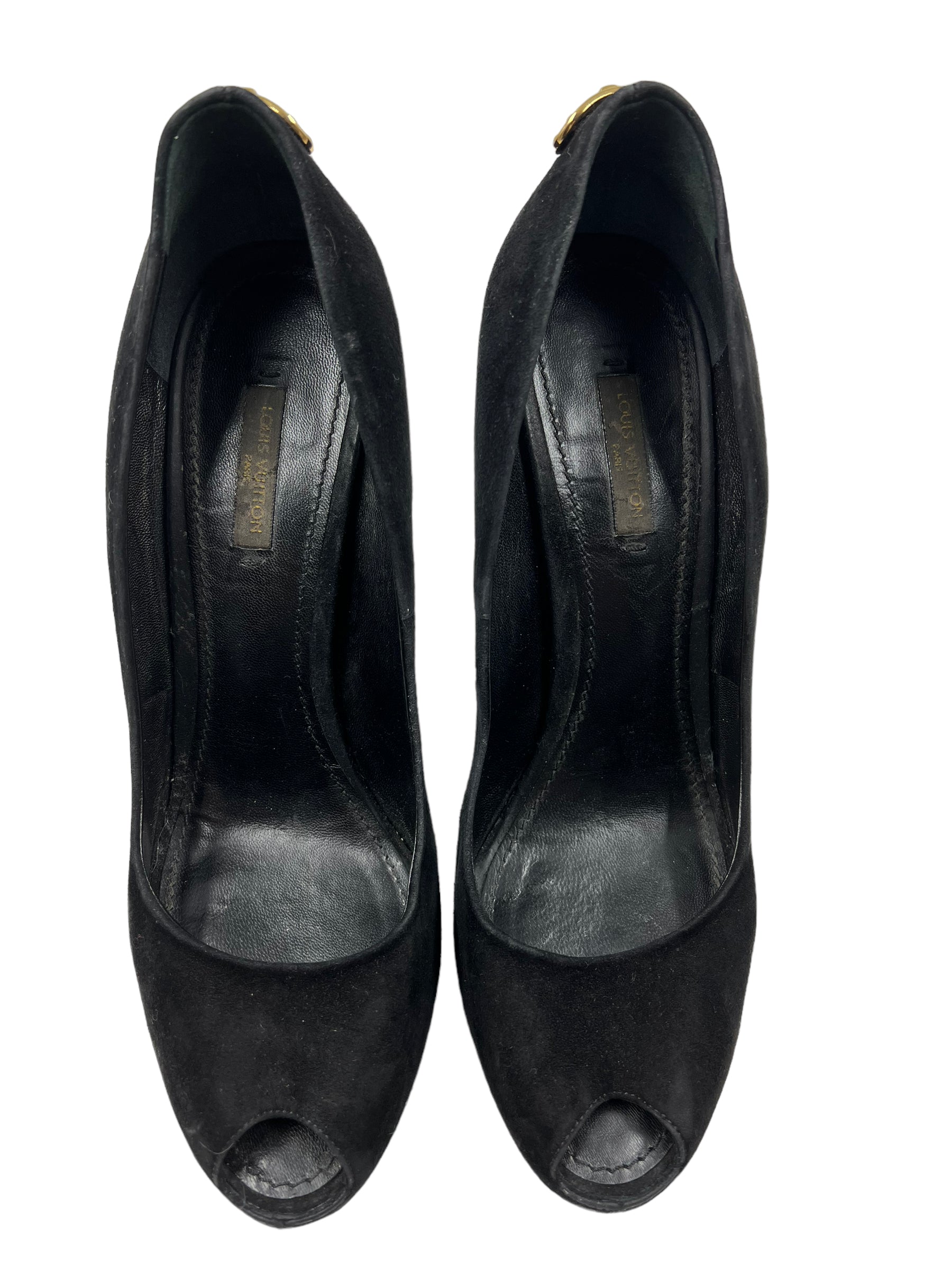 Louis Vuitton Black Suede 'Oh Really!' Size 39.5 Lock Heels