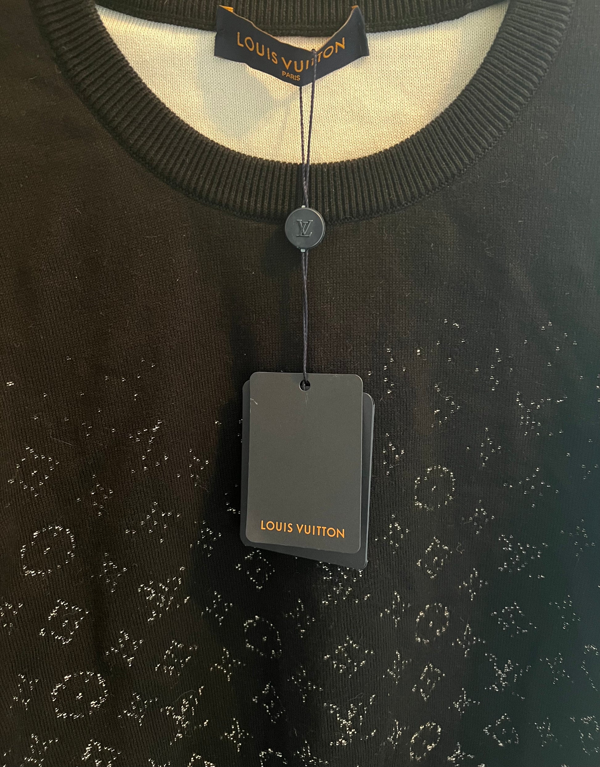 Black and white cotton Lvse Degrade Monogram crewneck sweater. Comes with original tags and box.