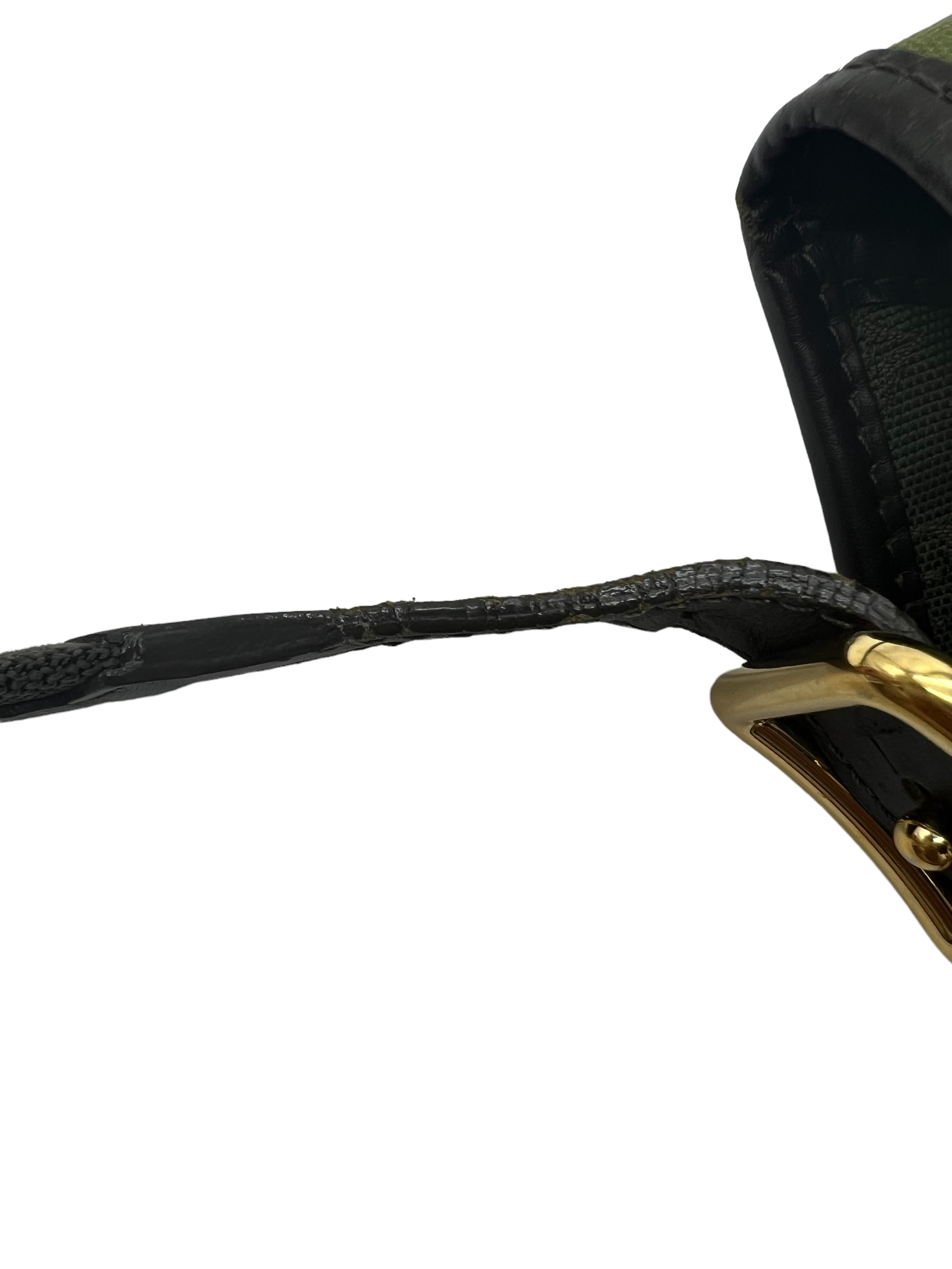 Green Mini Lin canvas Belanger messenger with gold hardware and brown leather trim. Does not come with dust bag or box.
