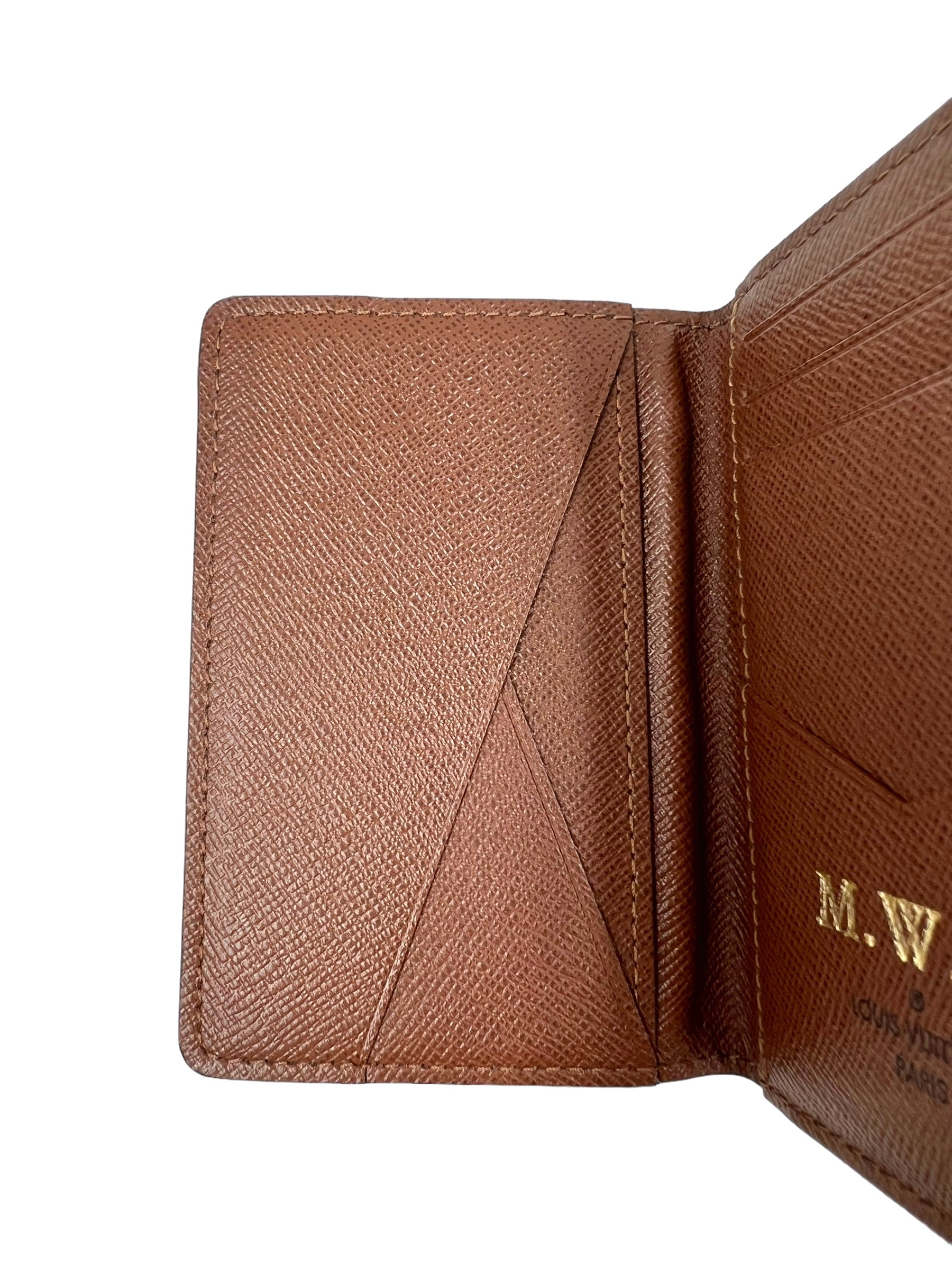 Brown Monogram canvas Pocket Organizer. Features five interior pockets, one exterior pocket and 3 card slots. Does not come with dust bag or box.