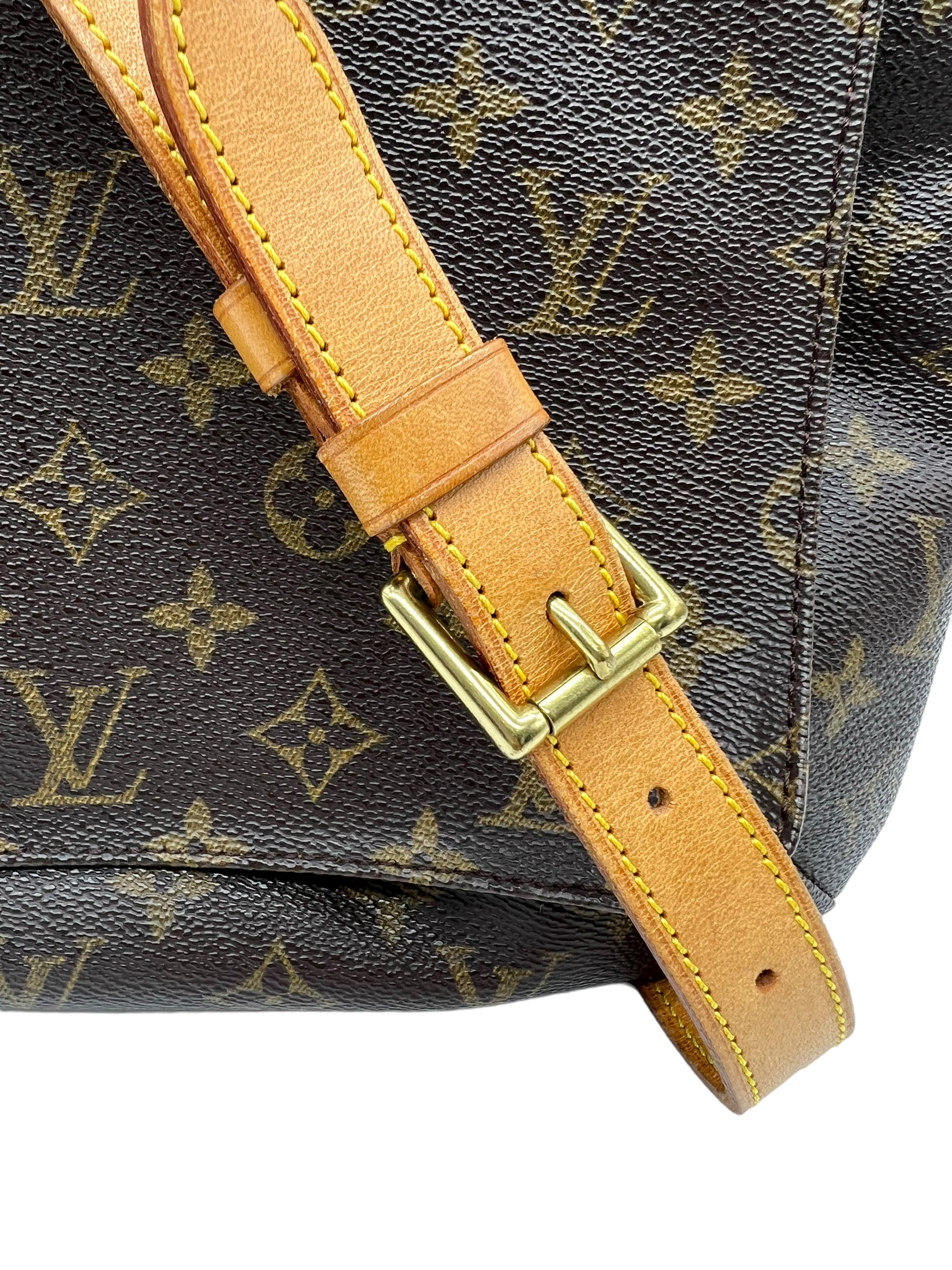 Brown Monogram Musette Salsa GM crossbody/shoulder bag with vachetta leather trim and strap. Does not come with dust bag or box.