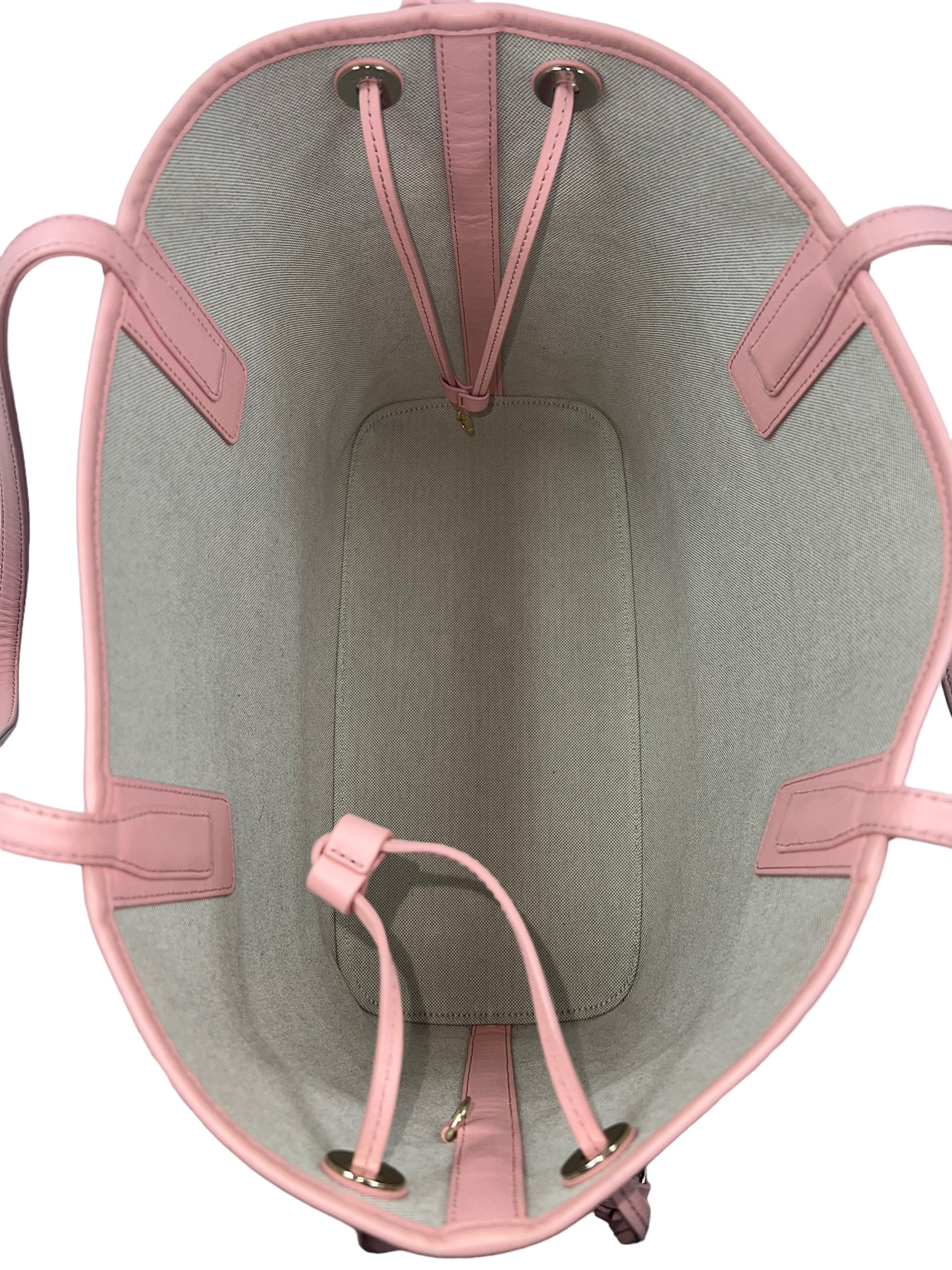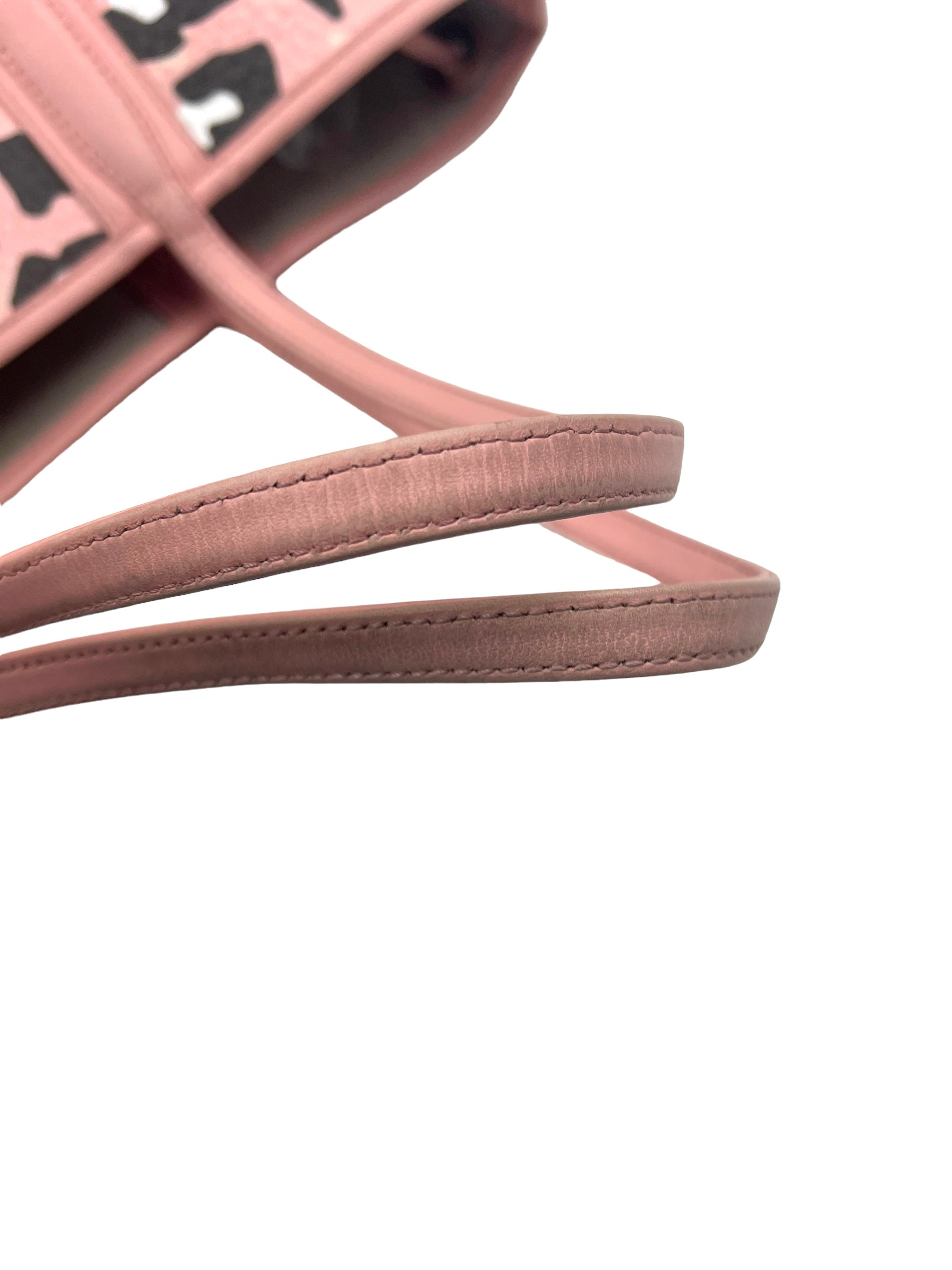 Pink/black/white logo leopard print medium Aren shopper tote with leather trim, handles and bottom. Does not come with removable pouch or dust bag.