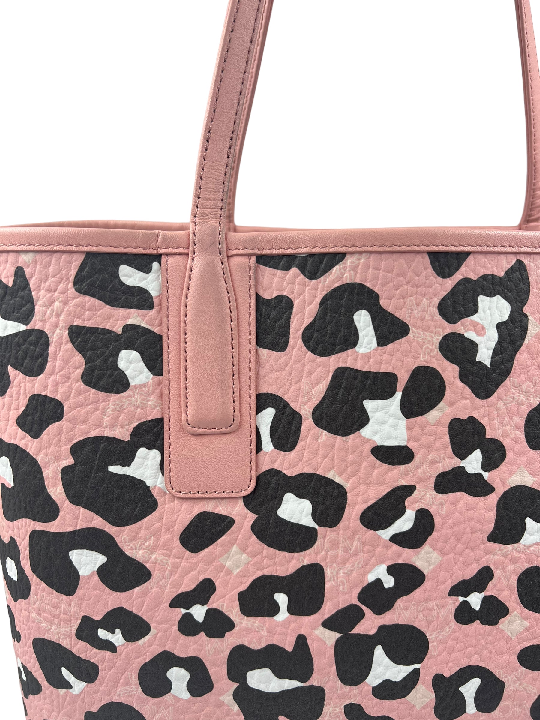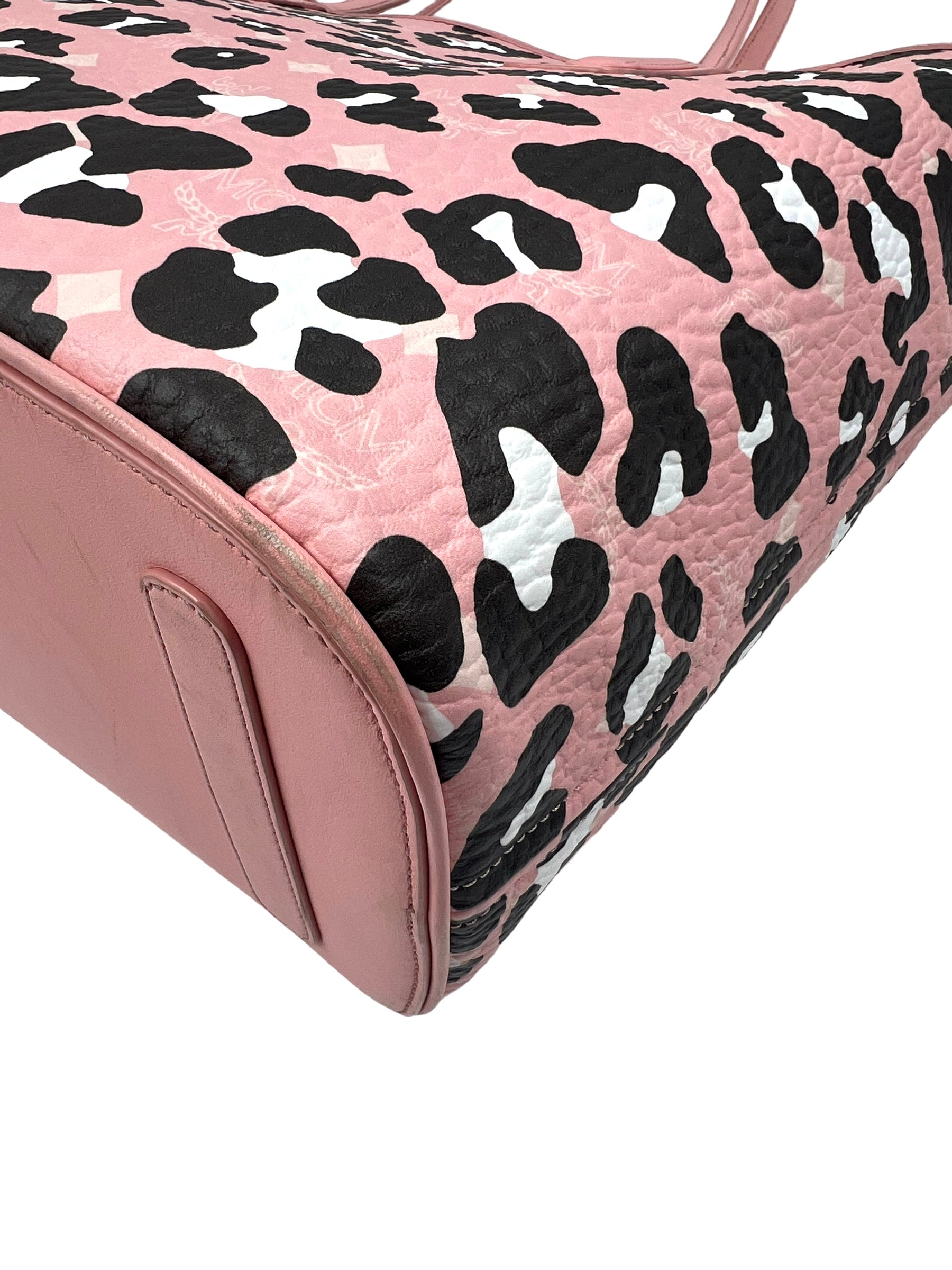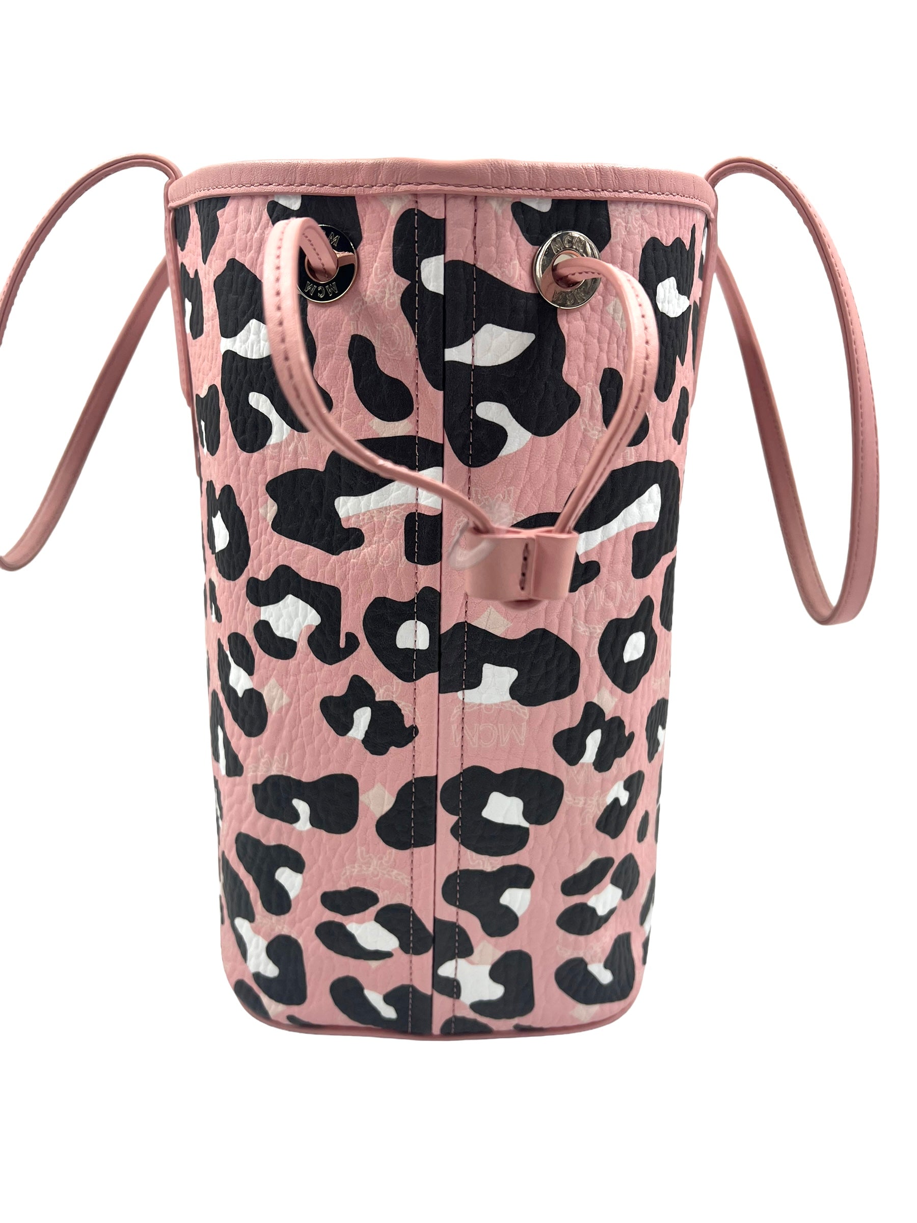 MCM Pink Leopard Print Medium Aren Shopper Tote
