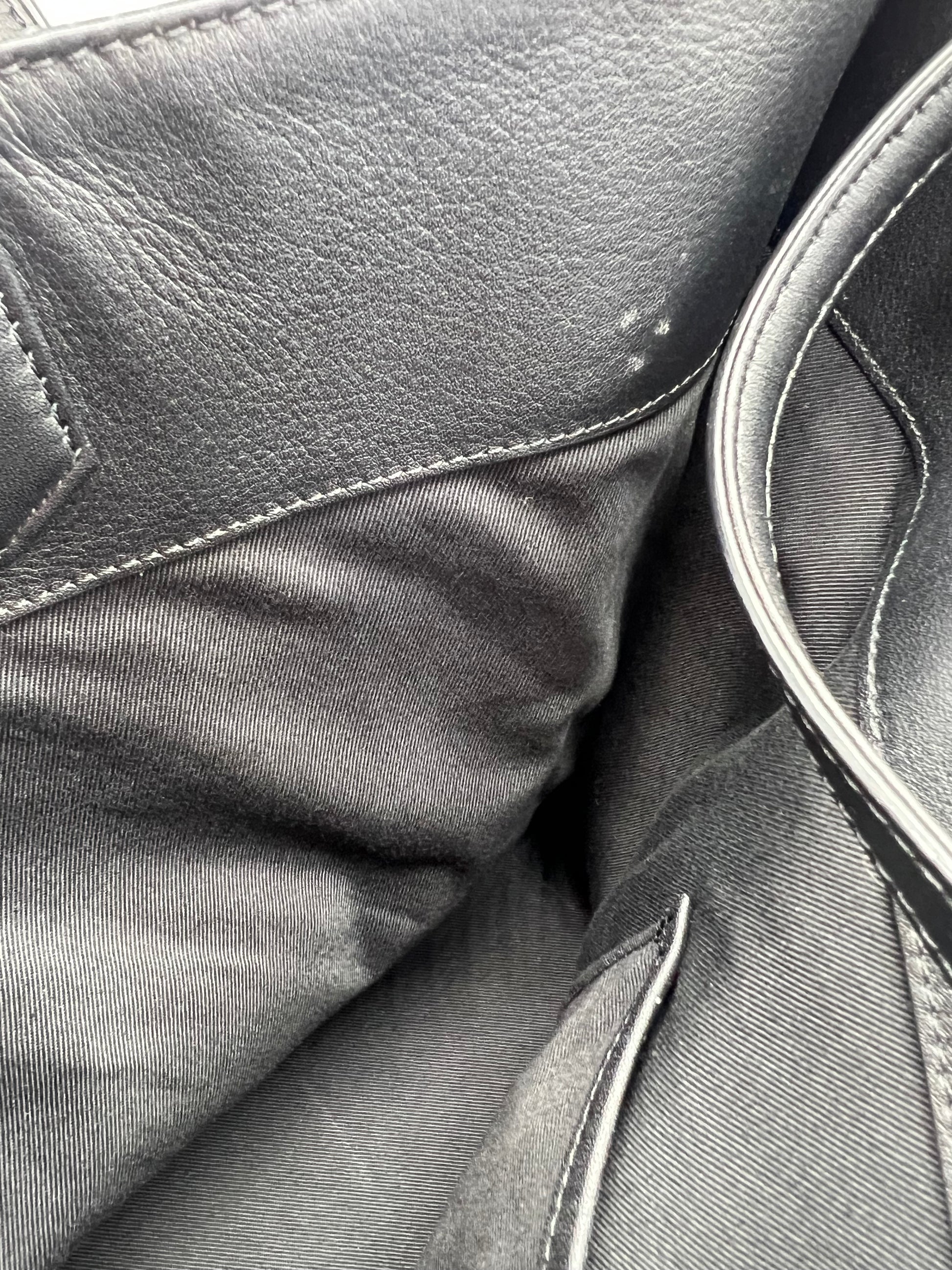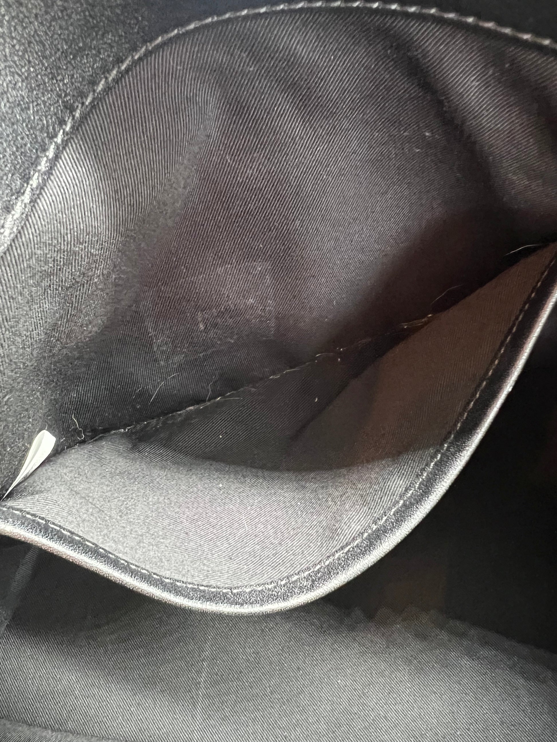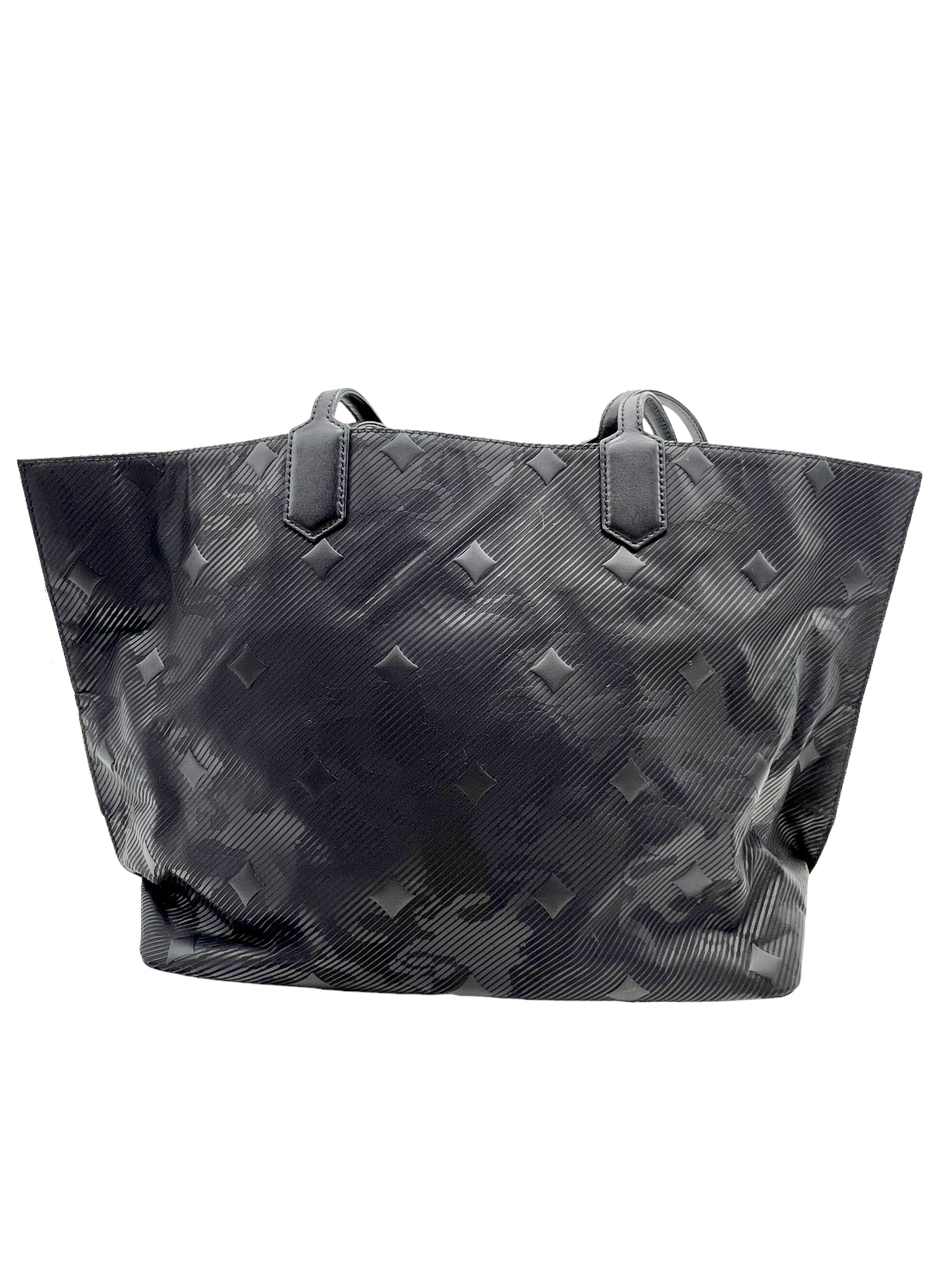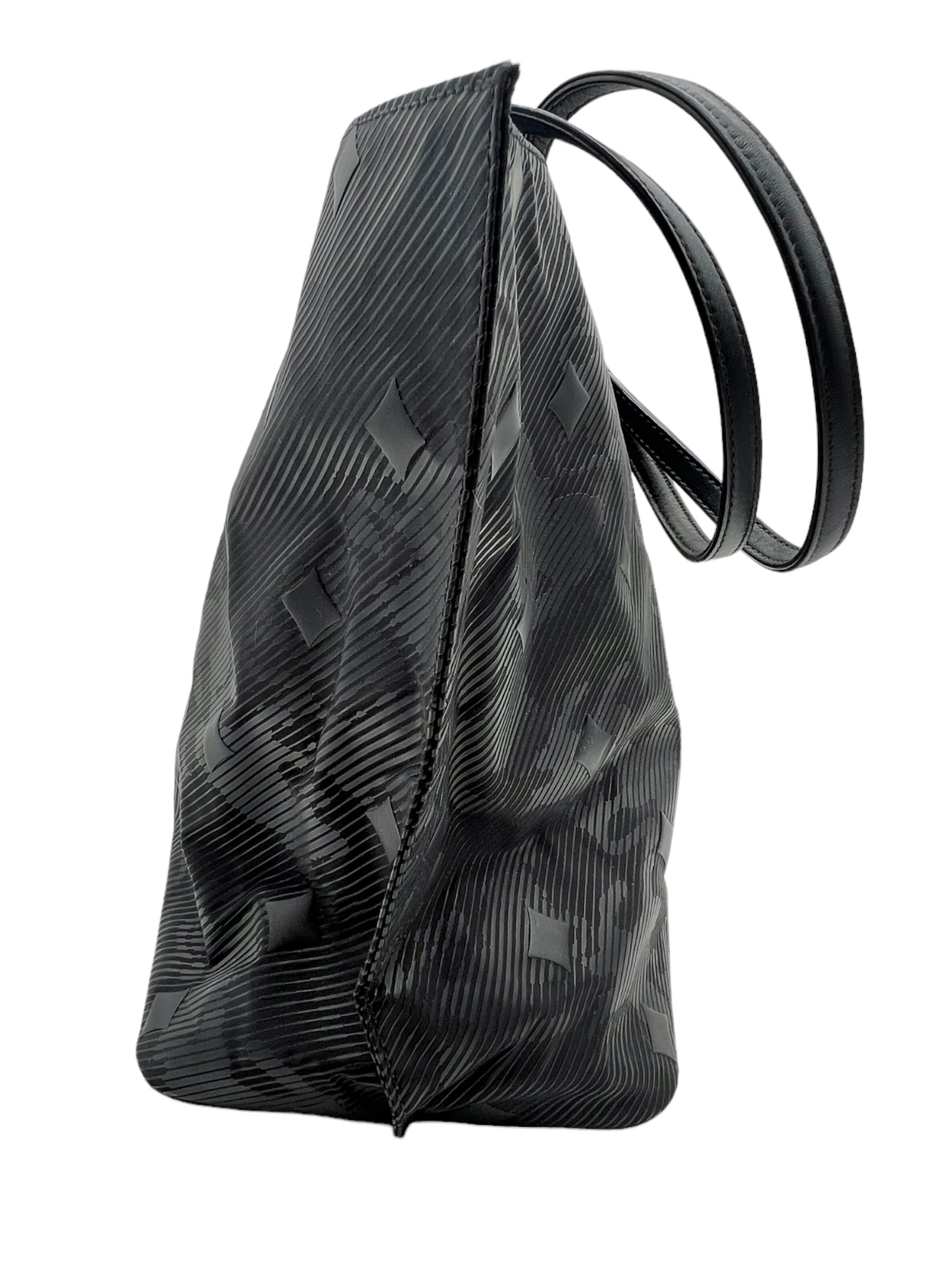 Black nylon tote with rubberized abstract lion print detail. Comes with dust bag.
