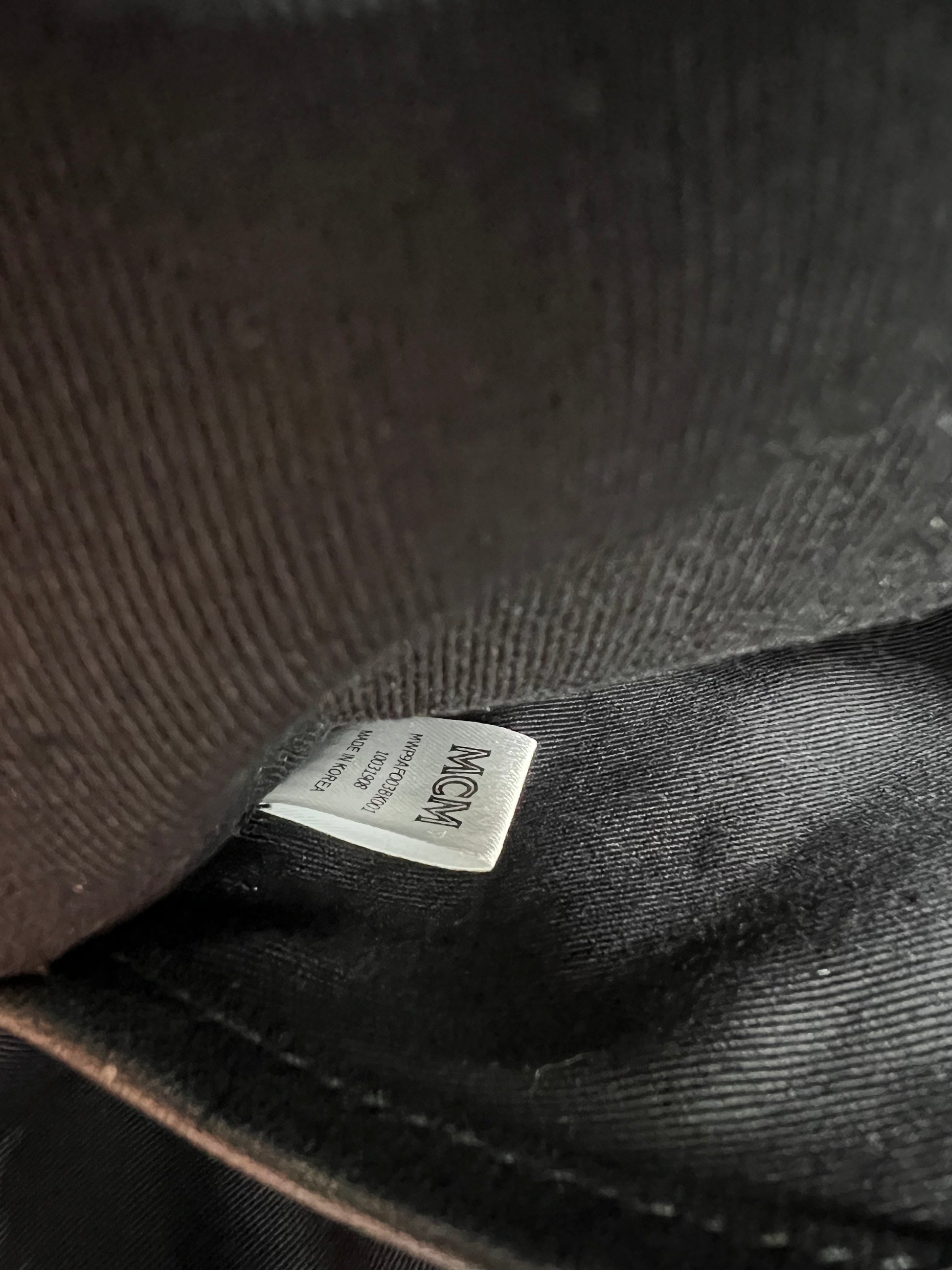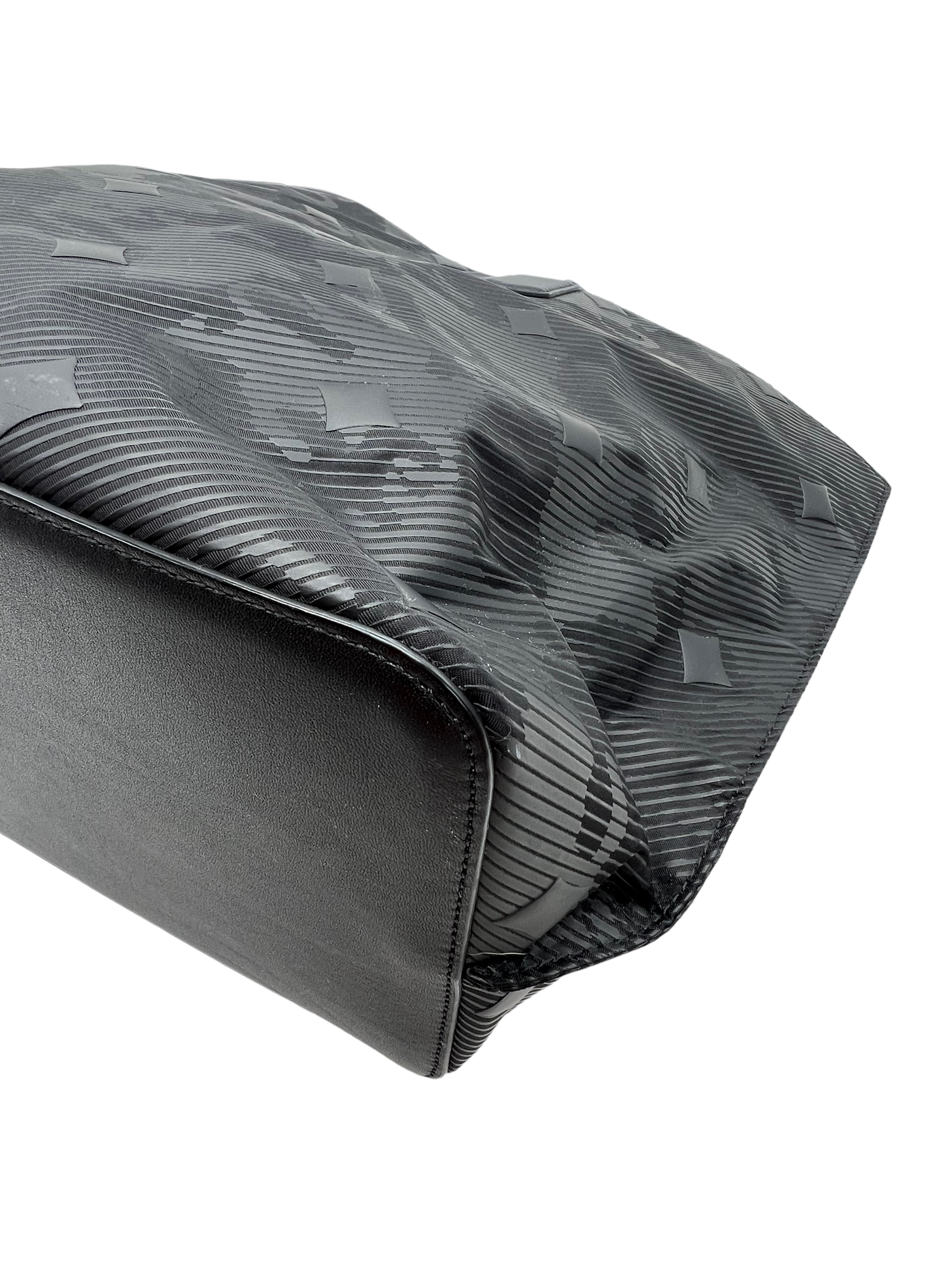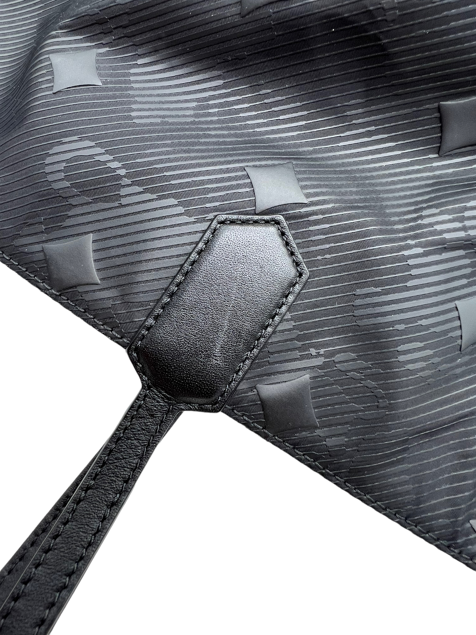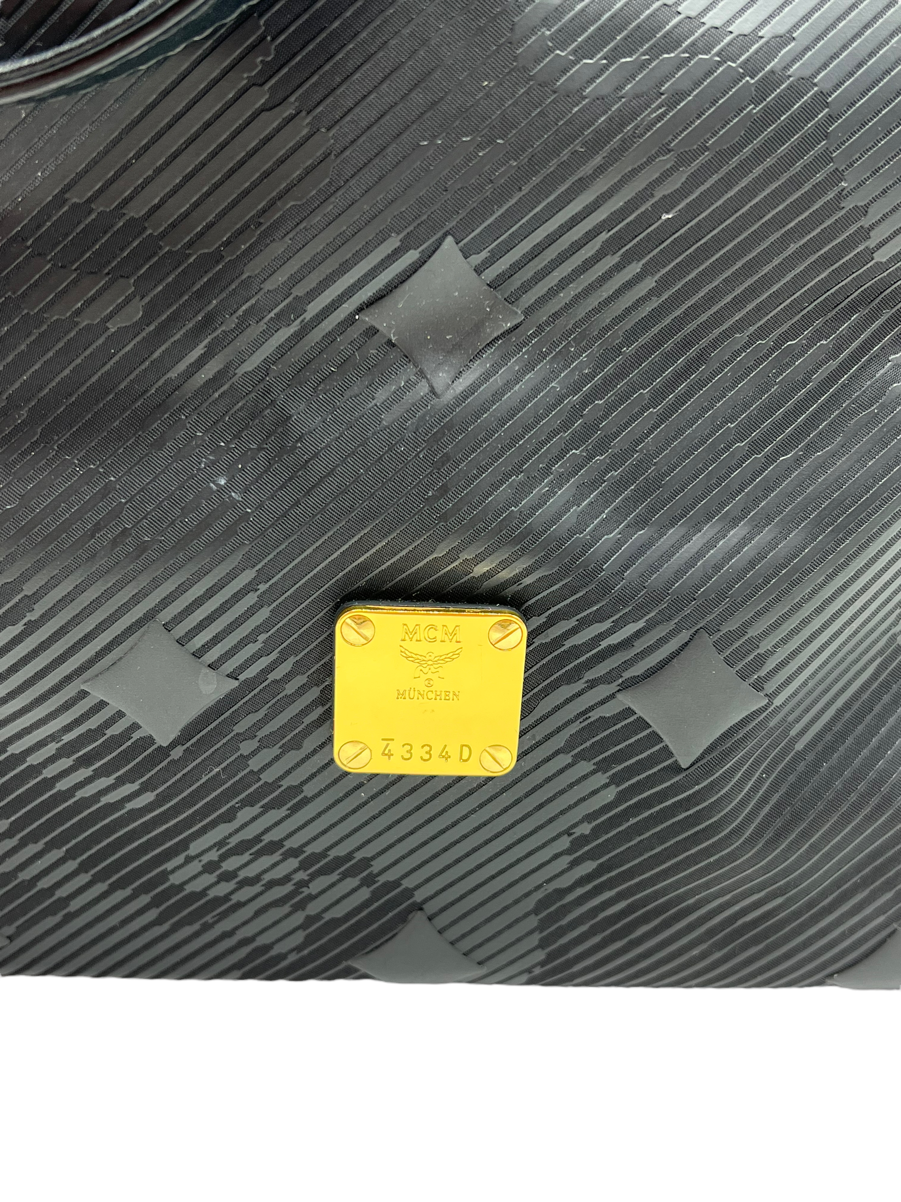 MCM Rubberized Black Nylon Abstract Lion Print Tote