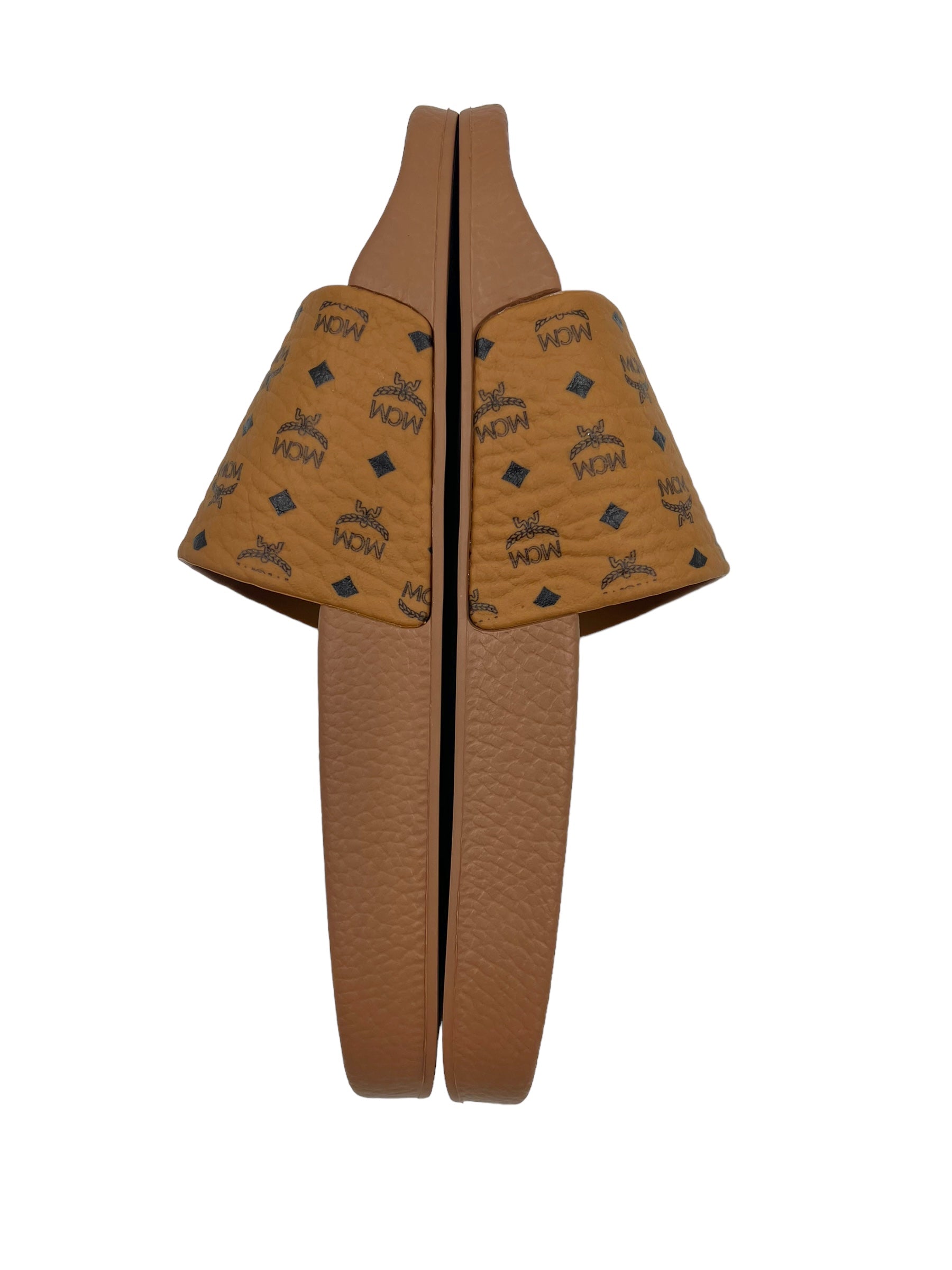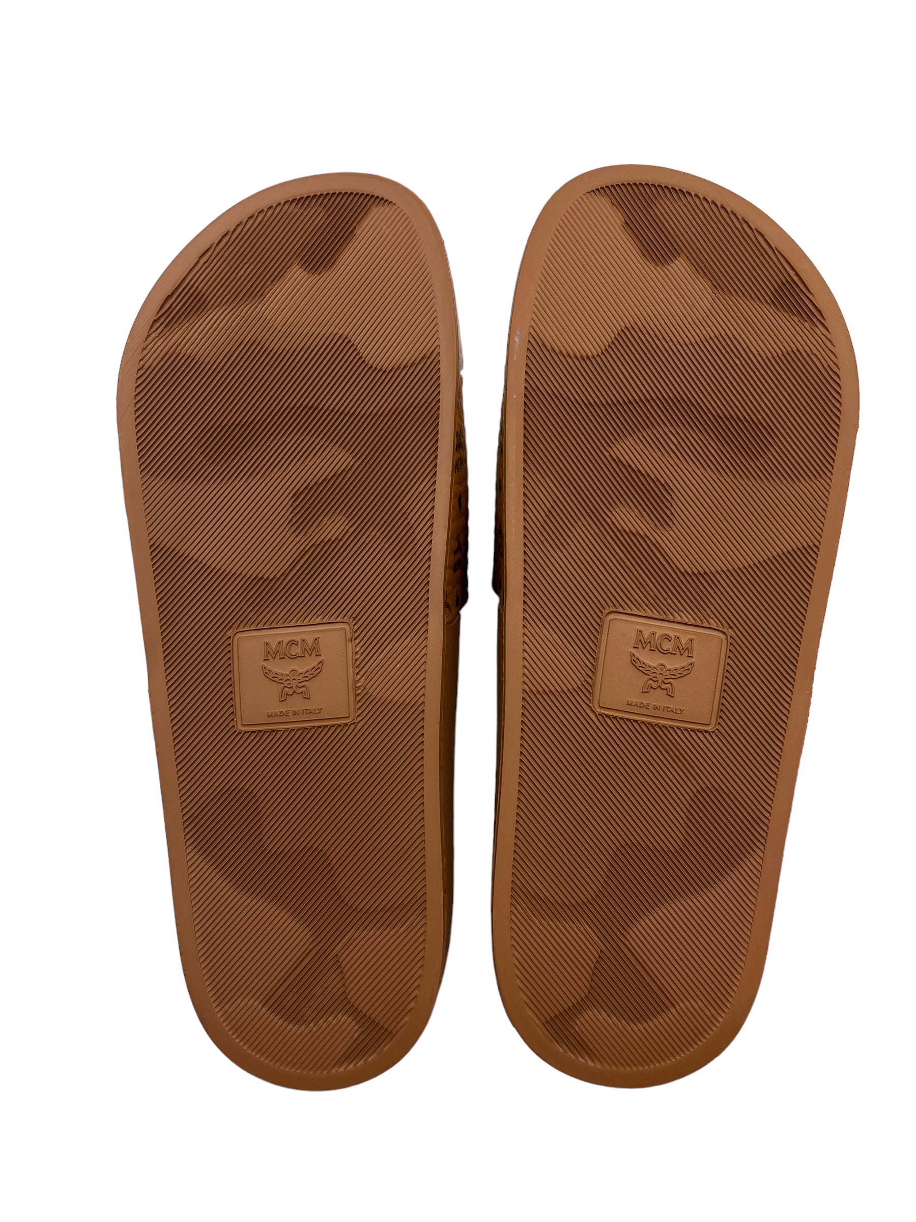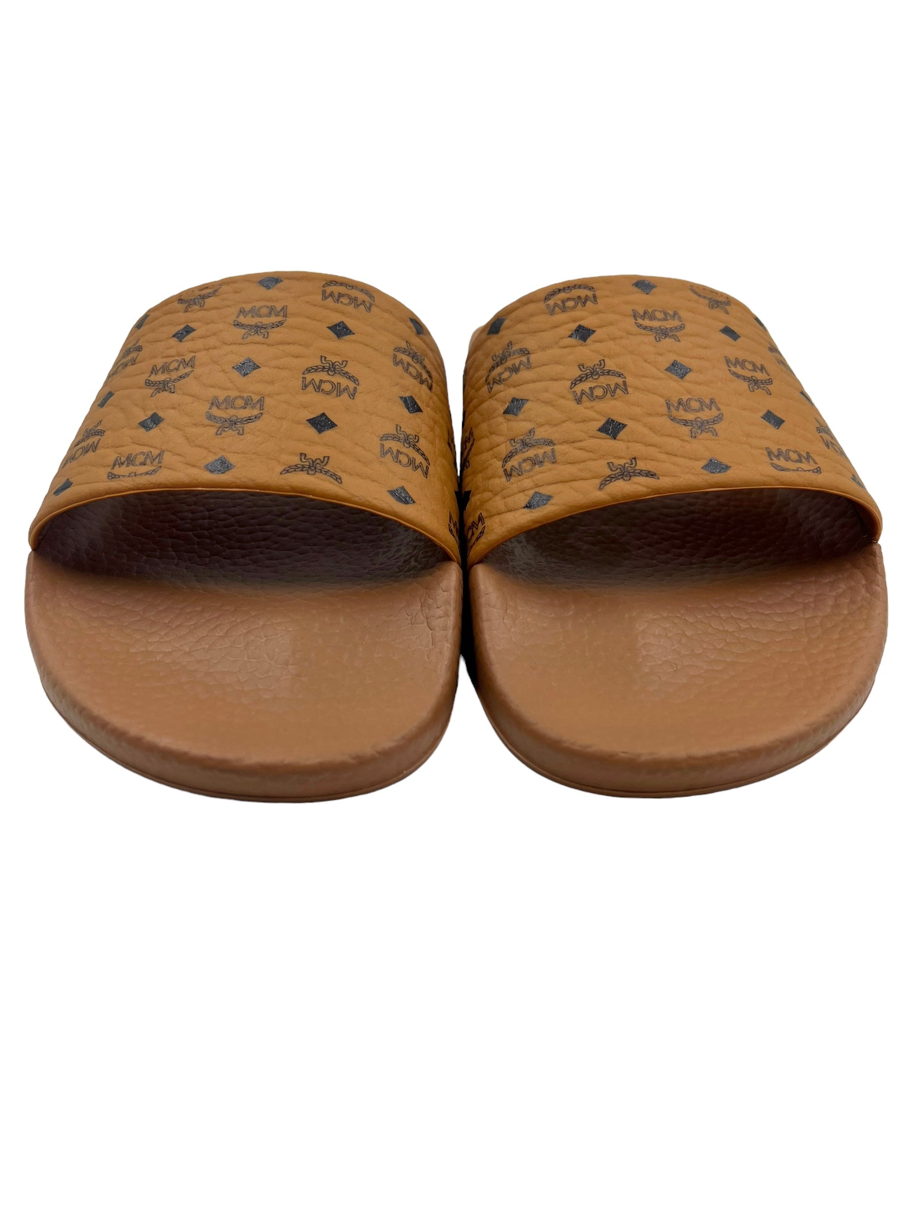 MCM Size 39 Tan Heritage Visetos Pool Slides