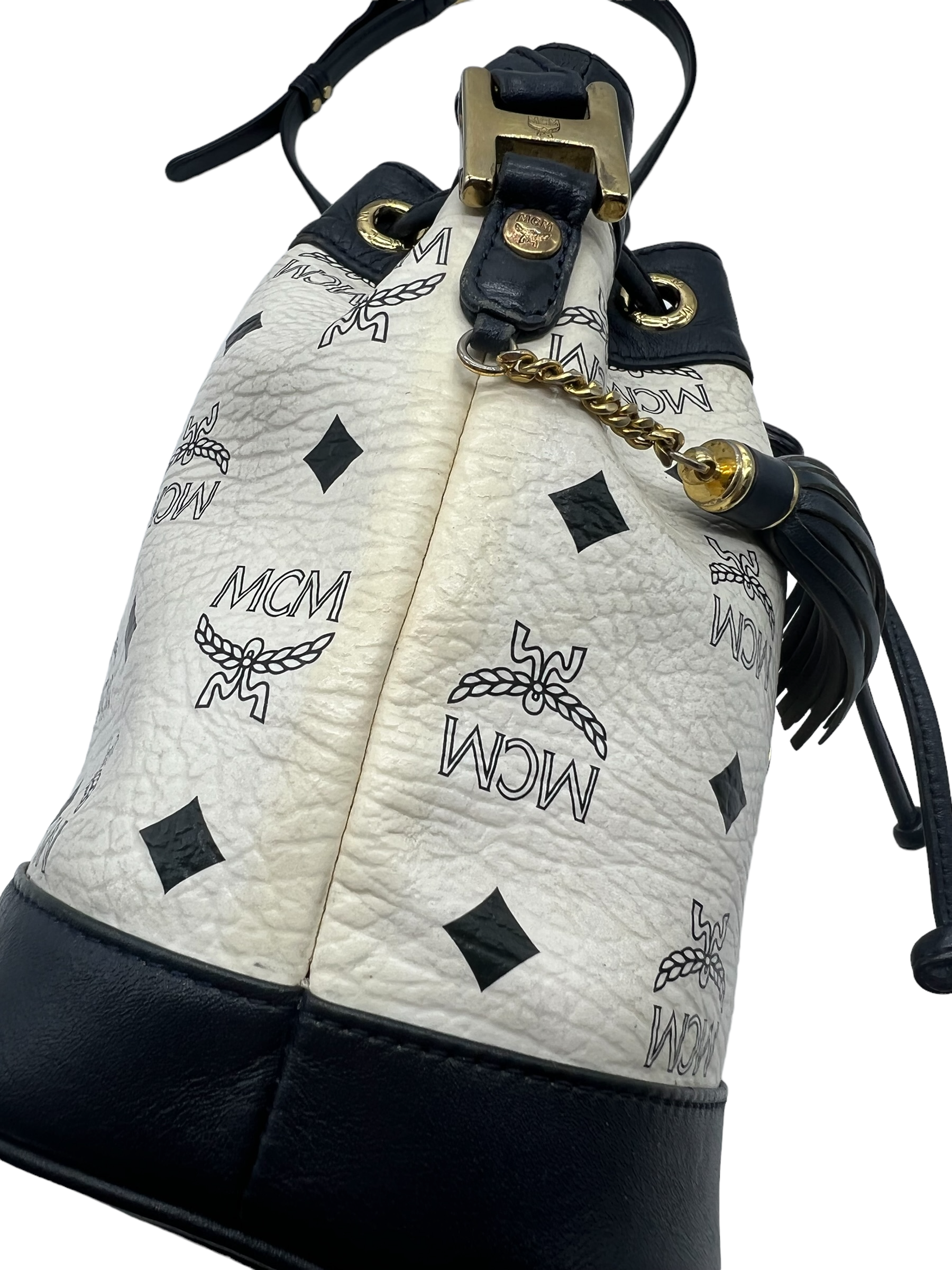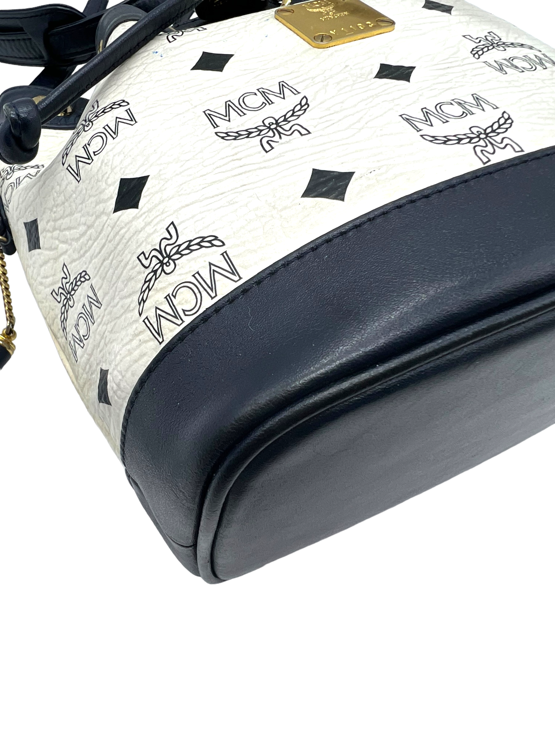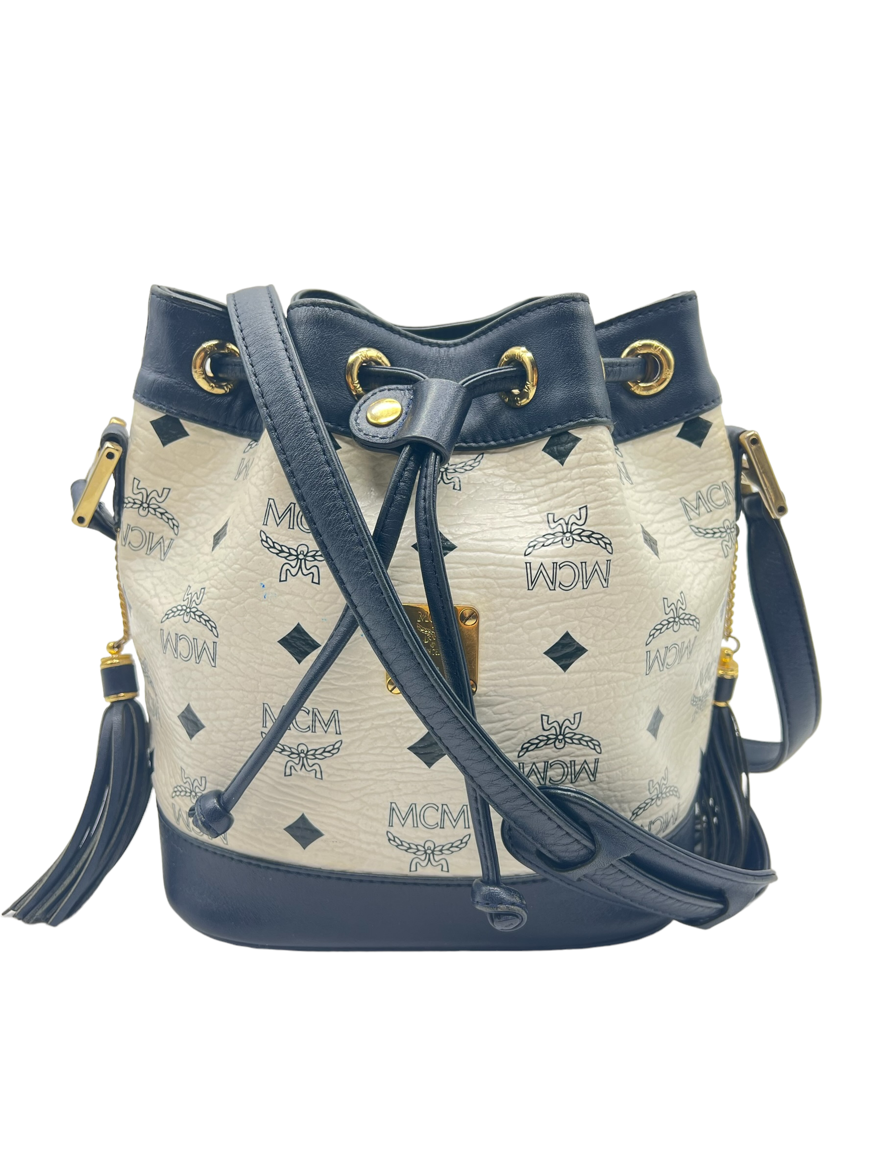 MCM Vintage White Navy Heritage Visetos Mini Bucket Crossbody