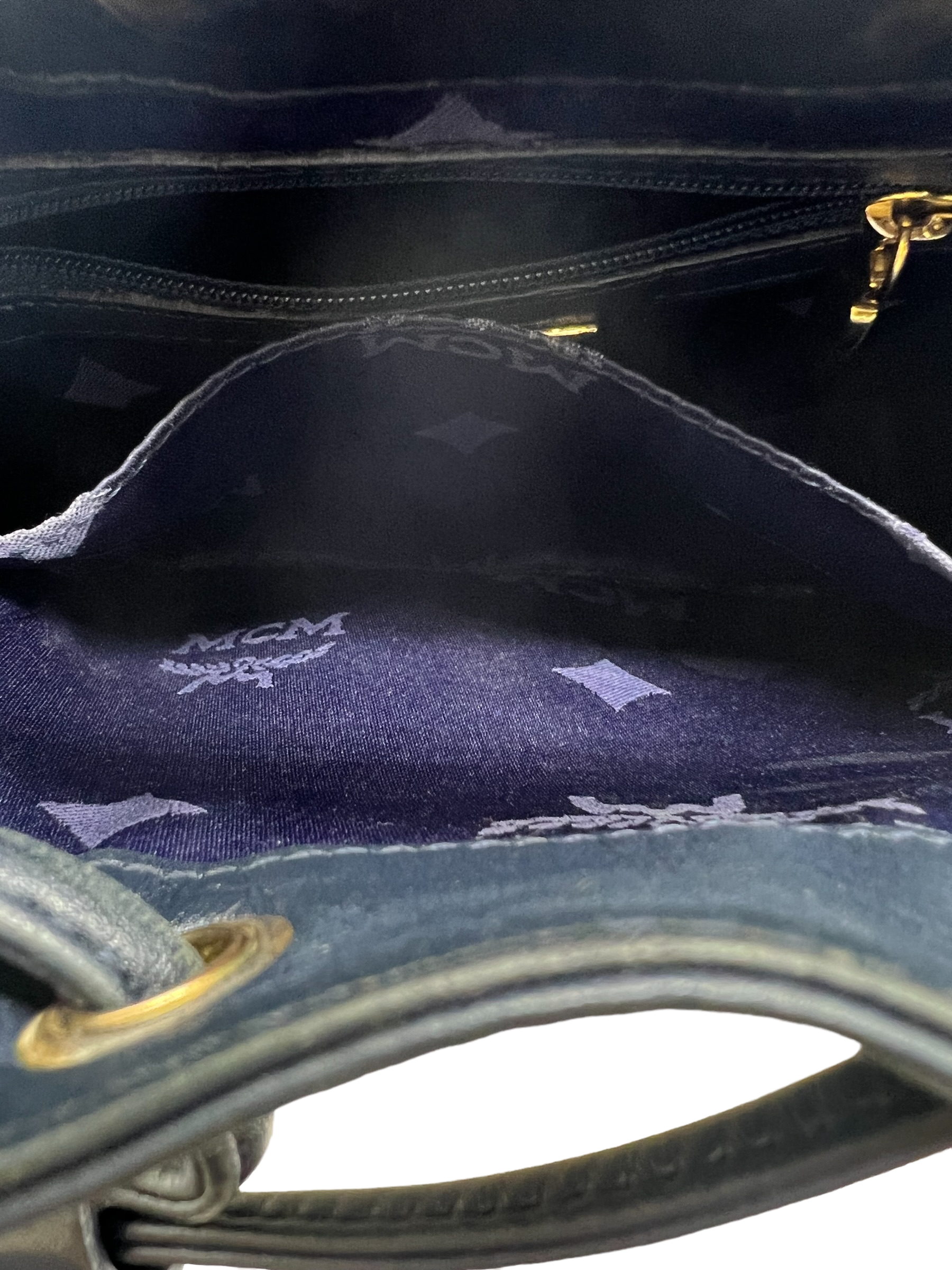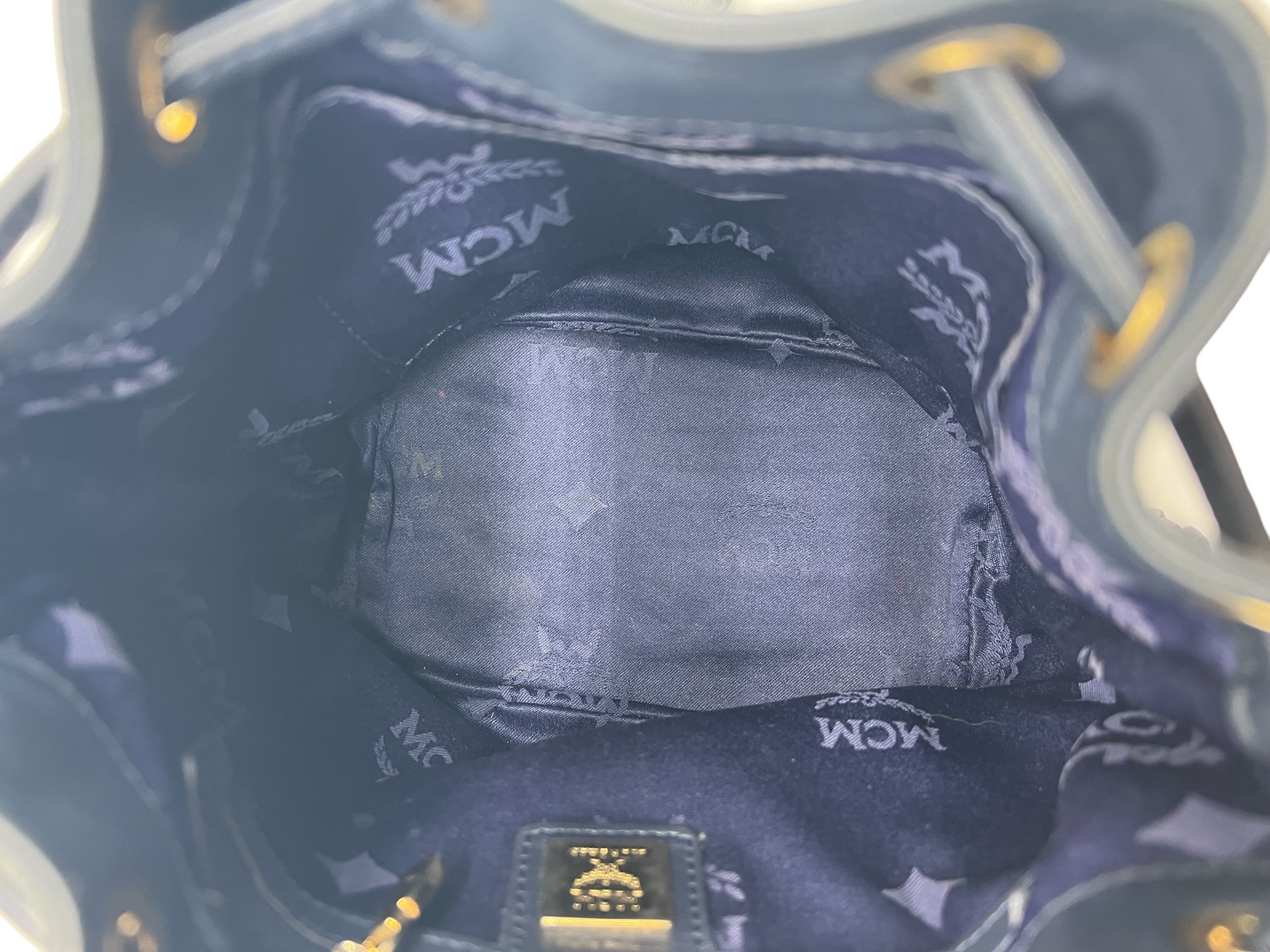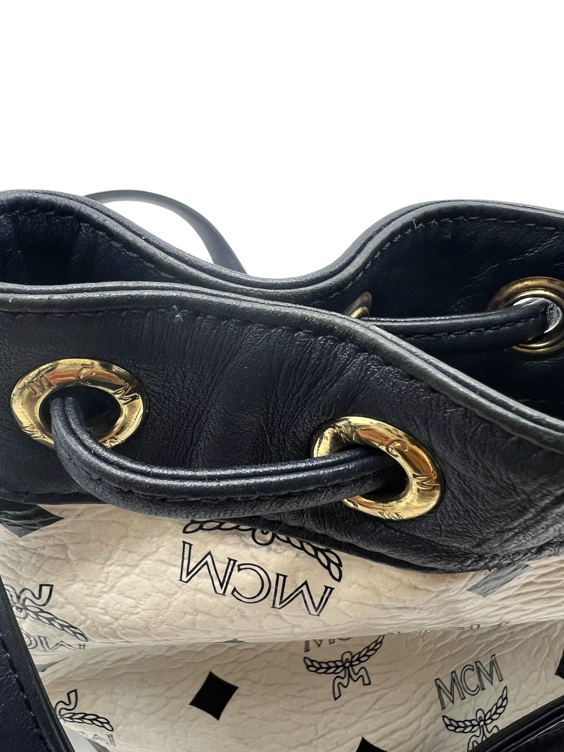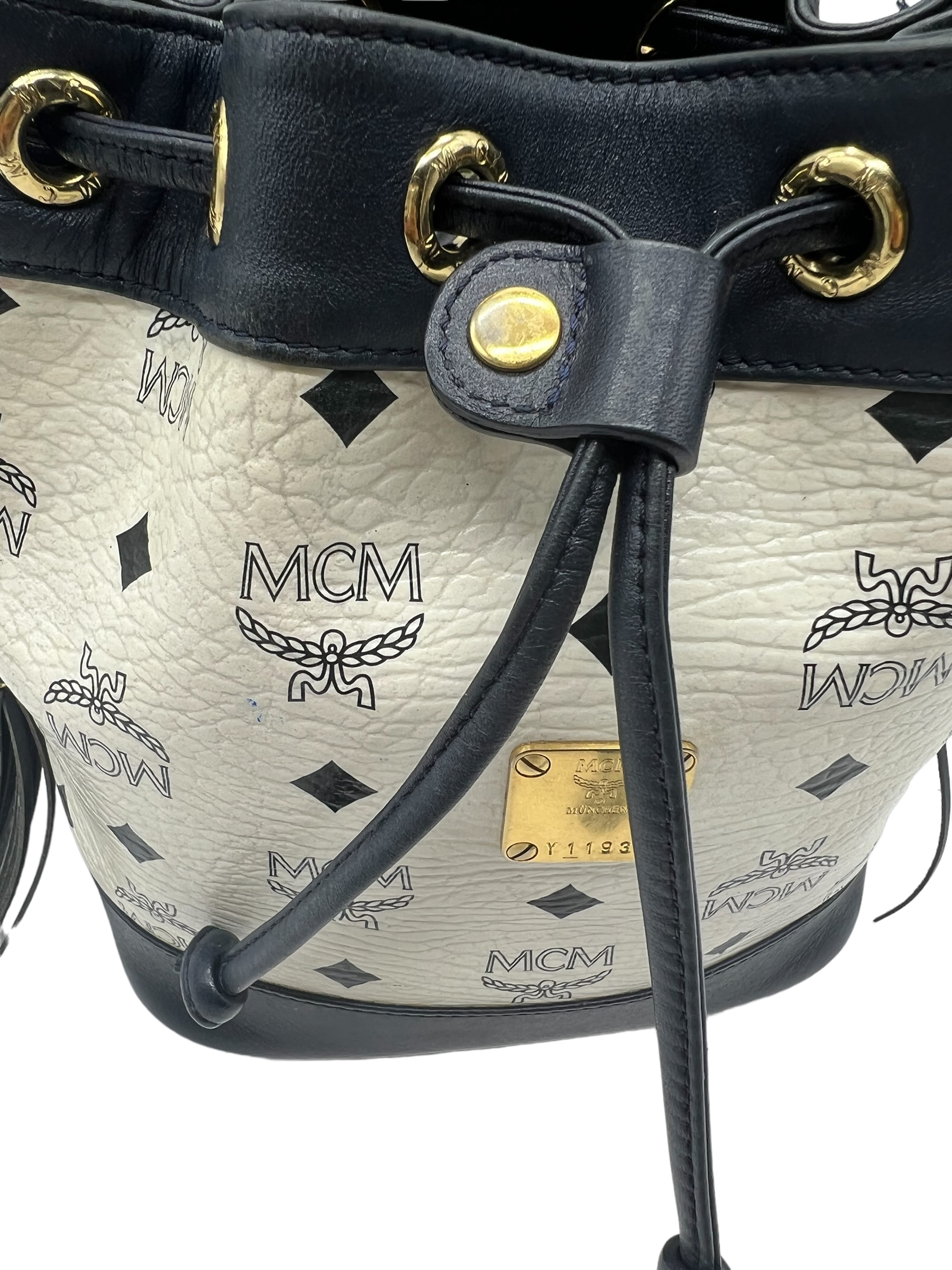 MCM Vintage White Navy Heritage Visetos Mini Bucket Crossbody