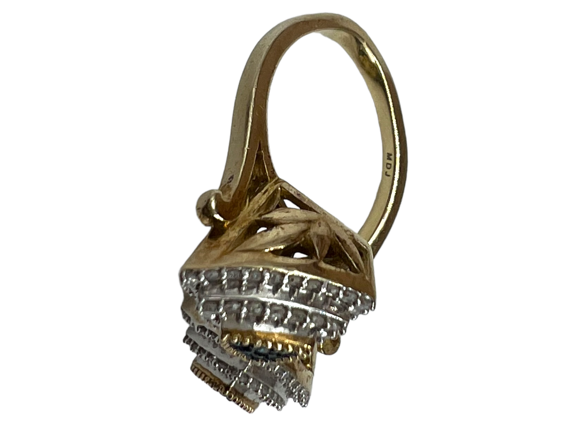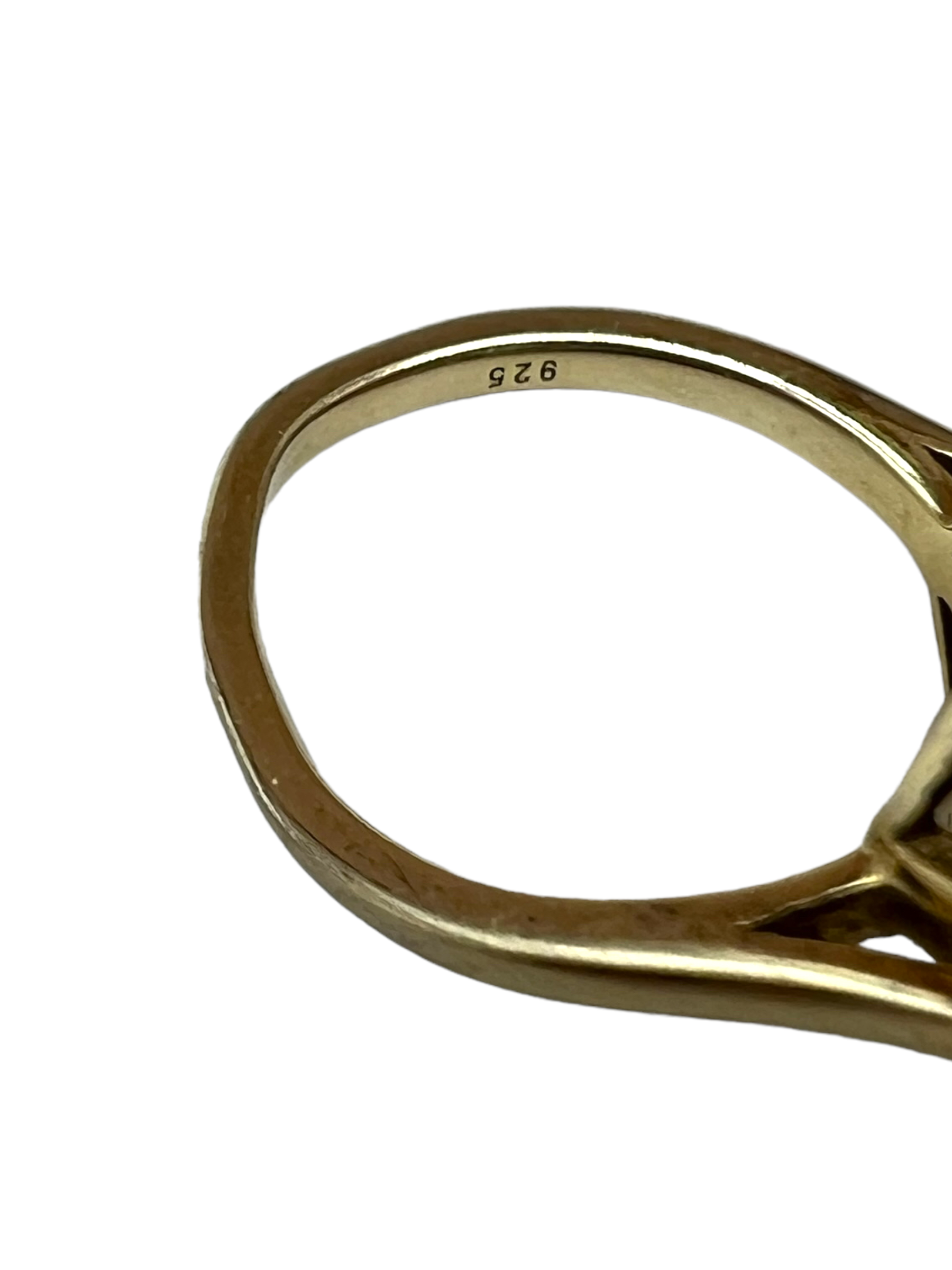 Michael Drechsler Gold Plated Sterling Silver Pave Diamond Size 7 Pyramid Cuff Ring