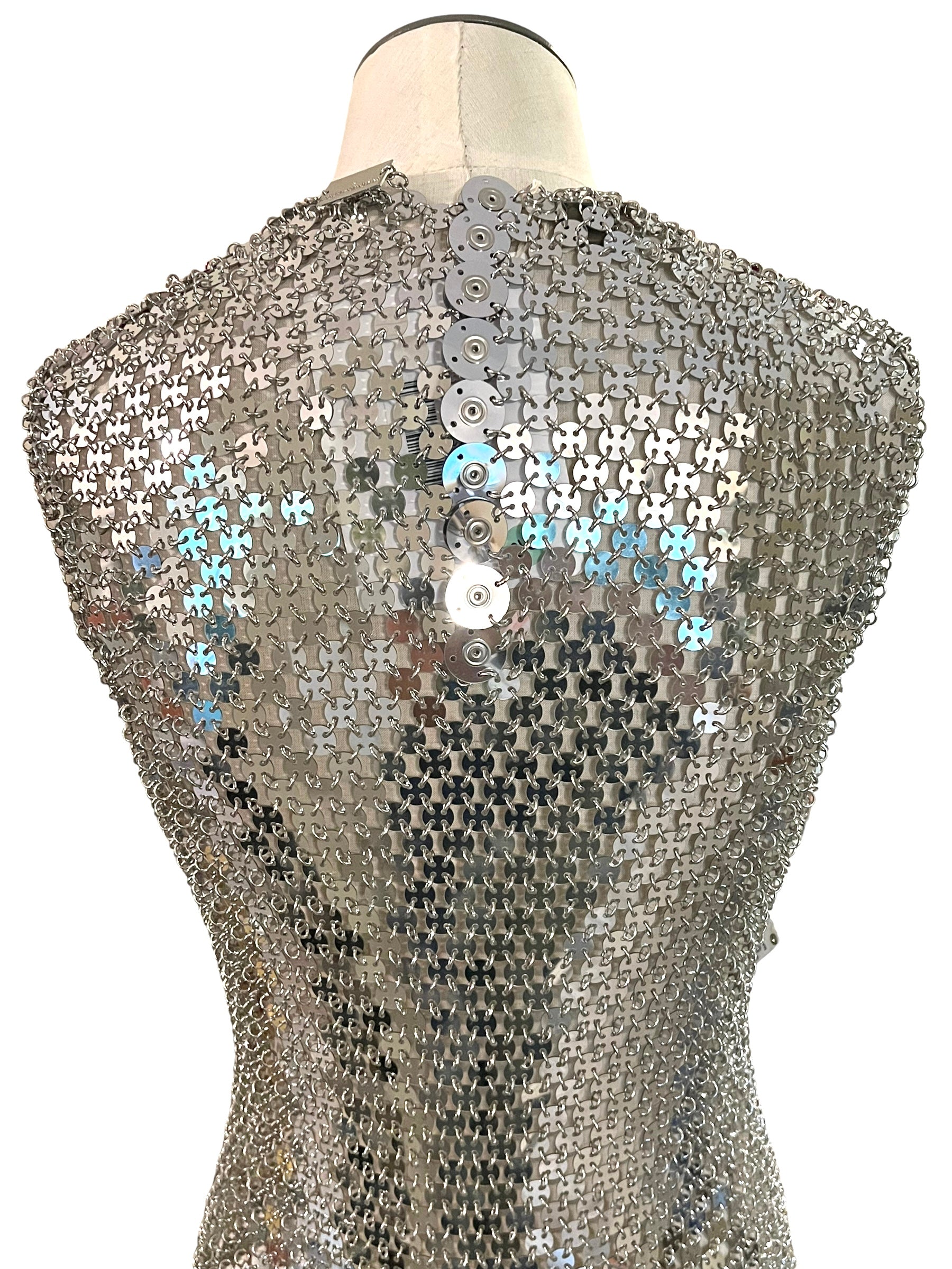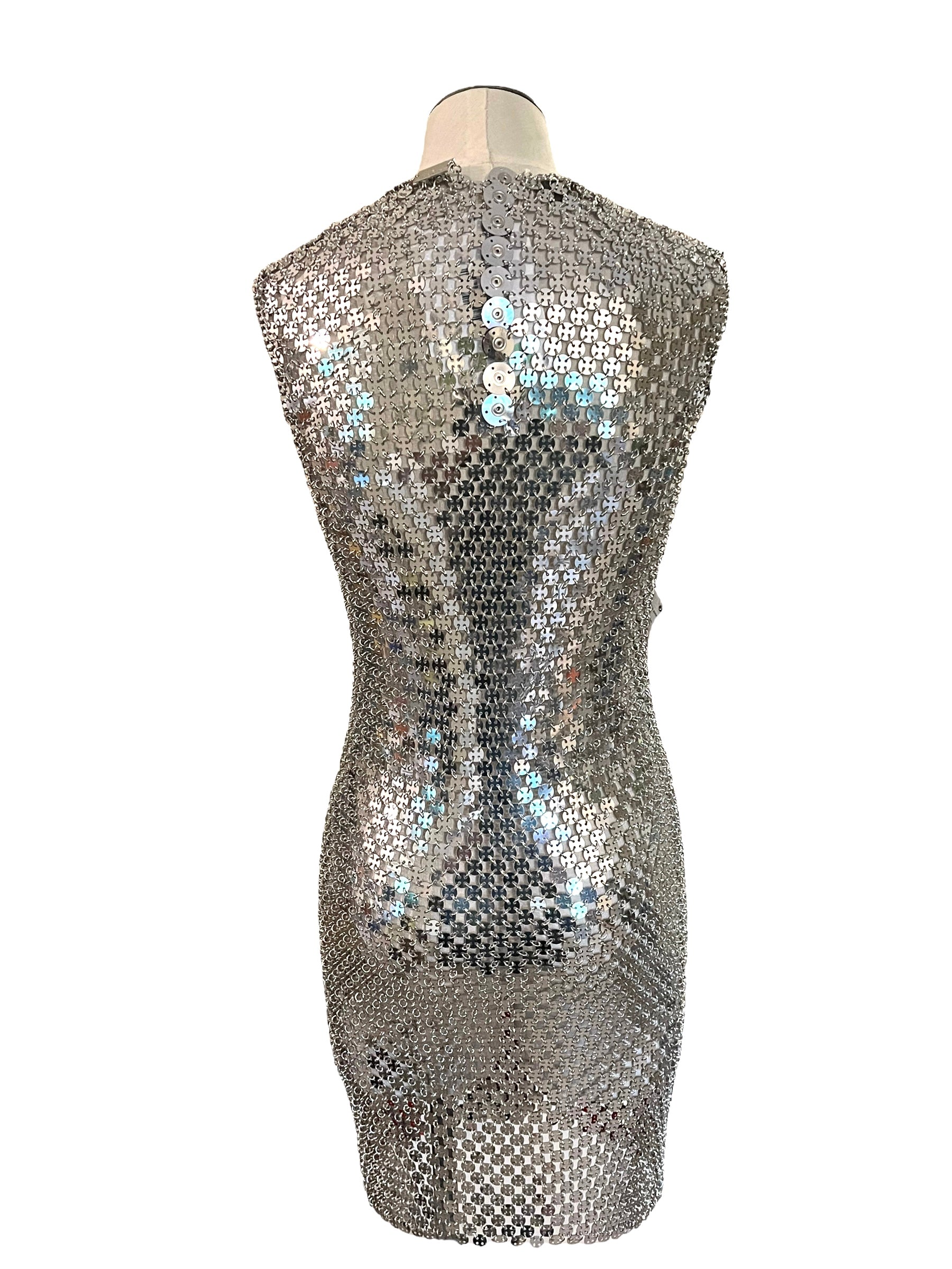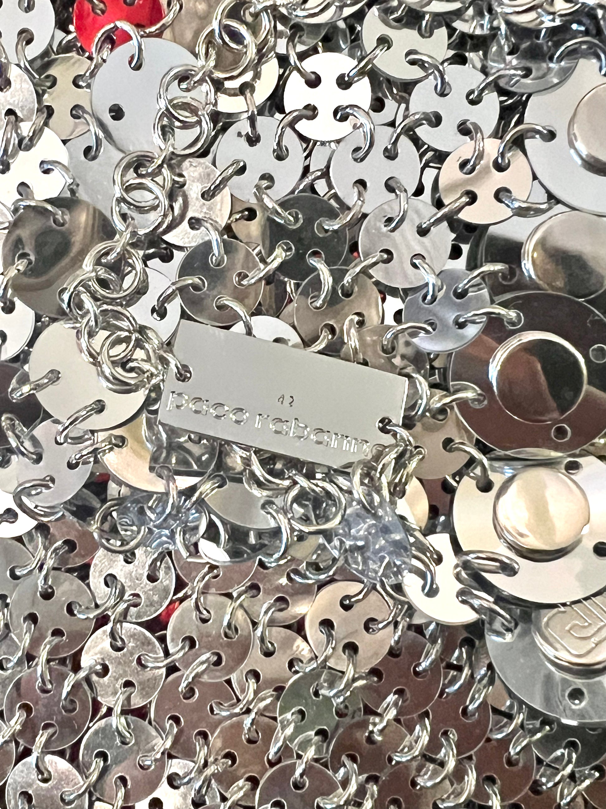 Paco Rabanne Size 42 Silver & Red Chainmail Heart Dress