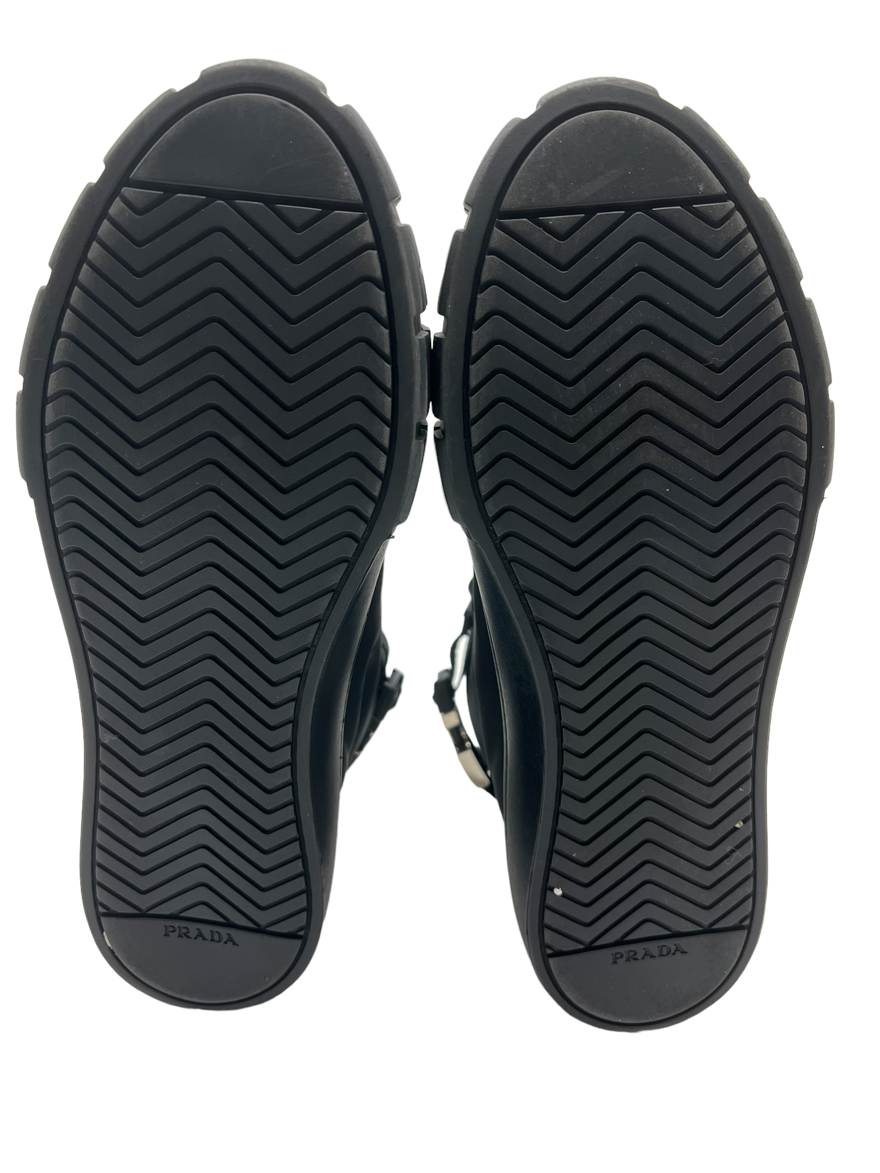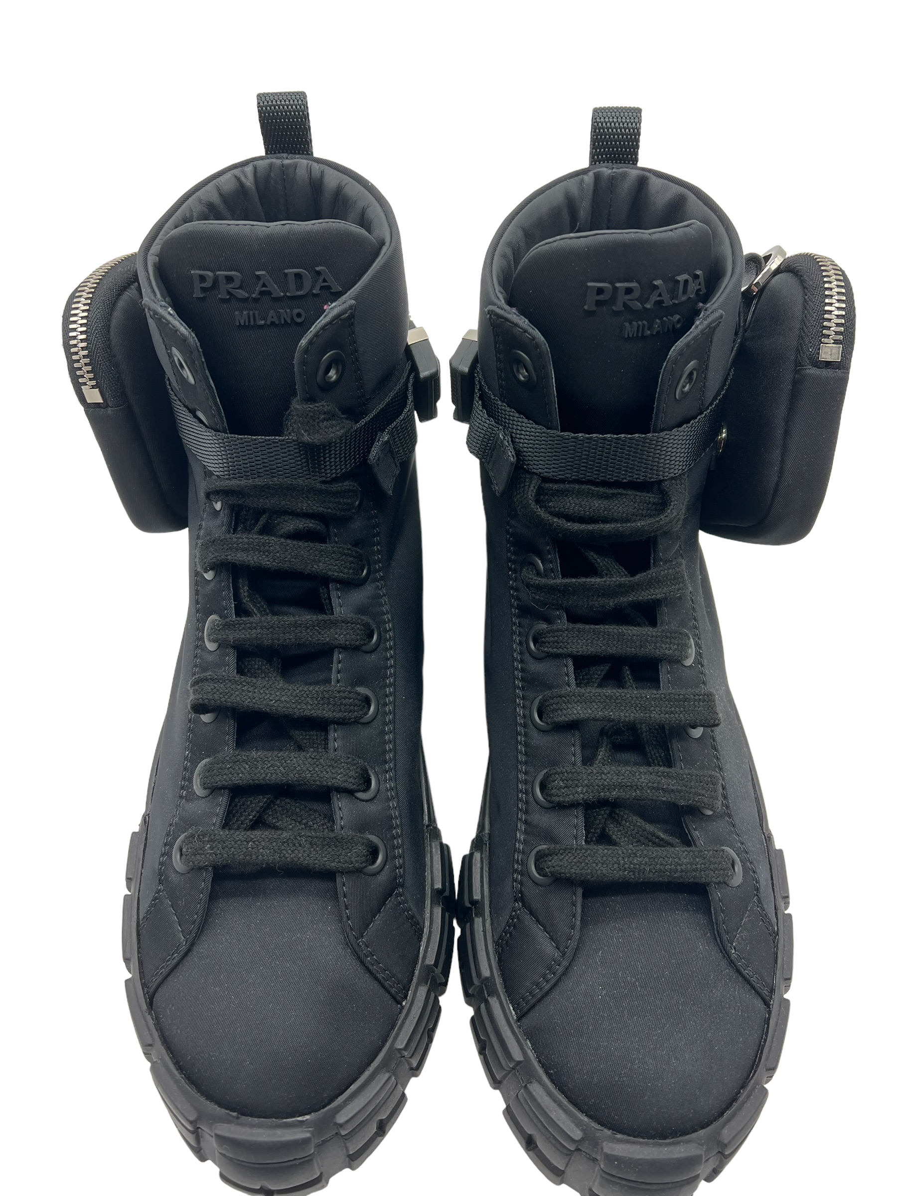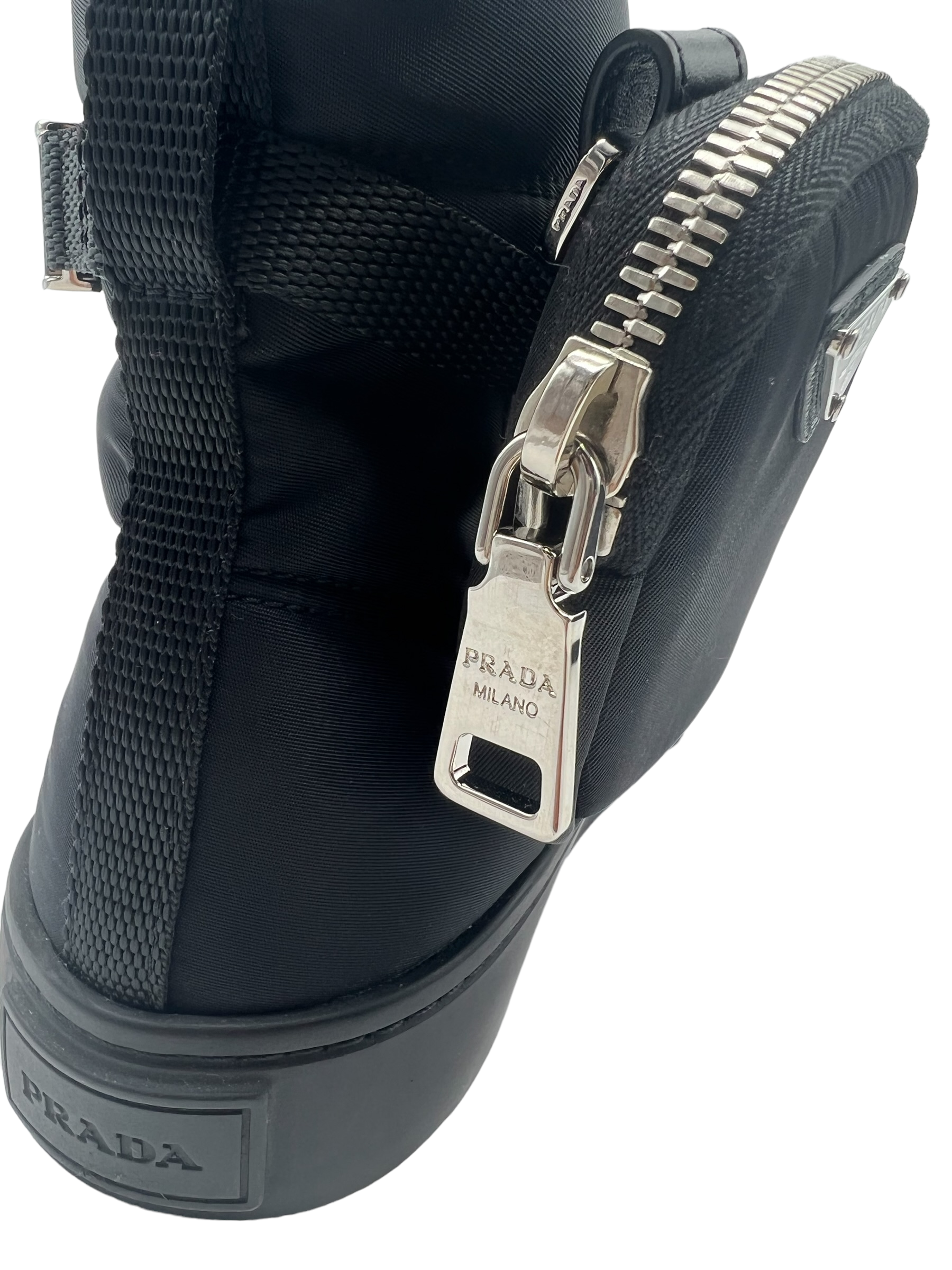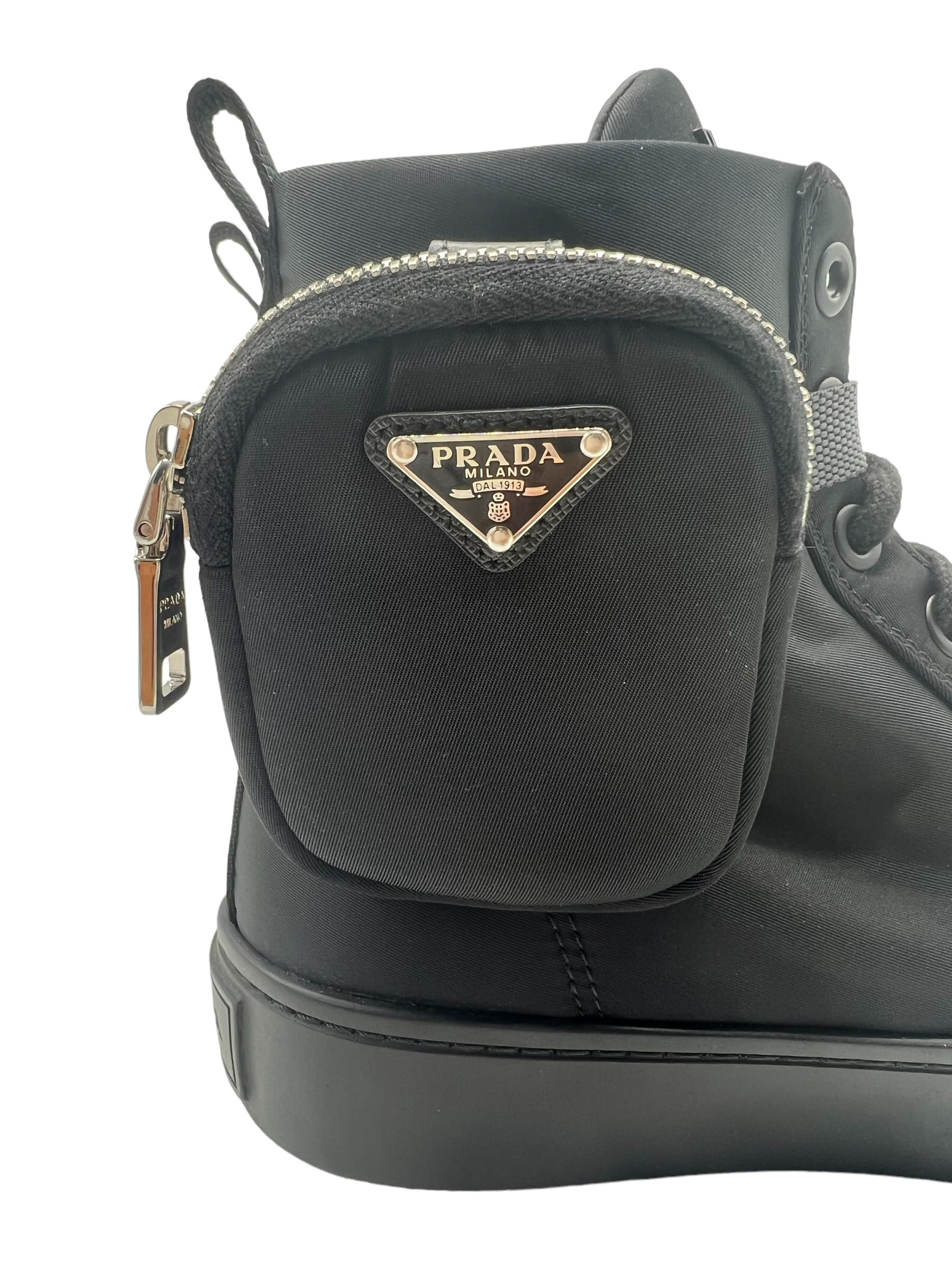 Prada Black Pouch Pocket Nylon Women's Size 40 High Top Sneakers