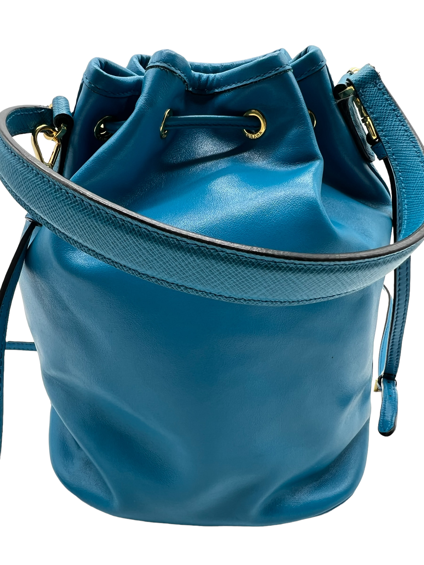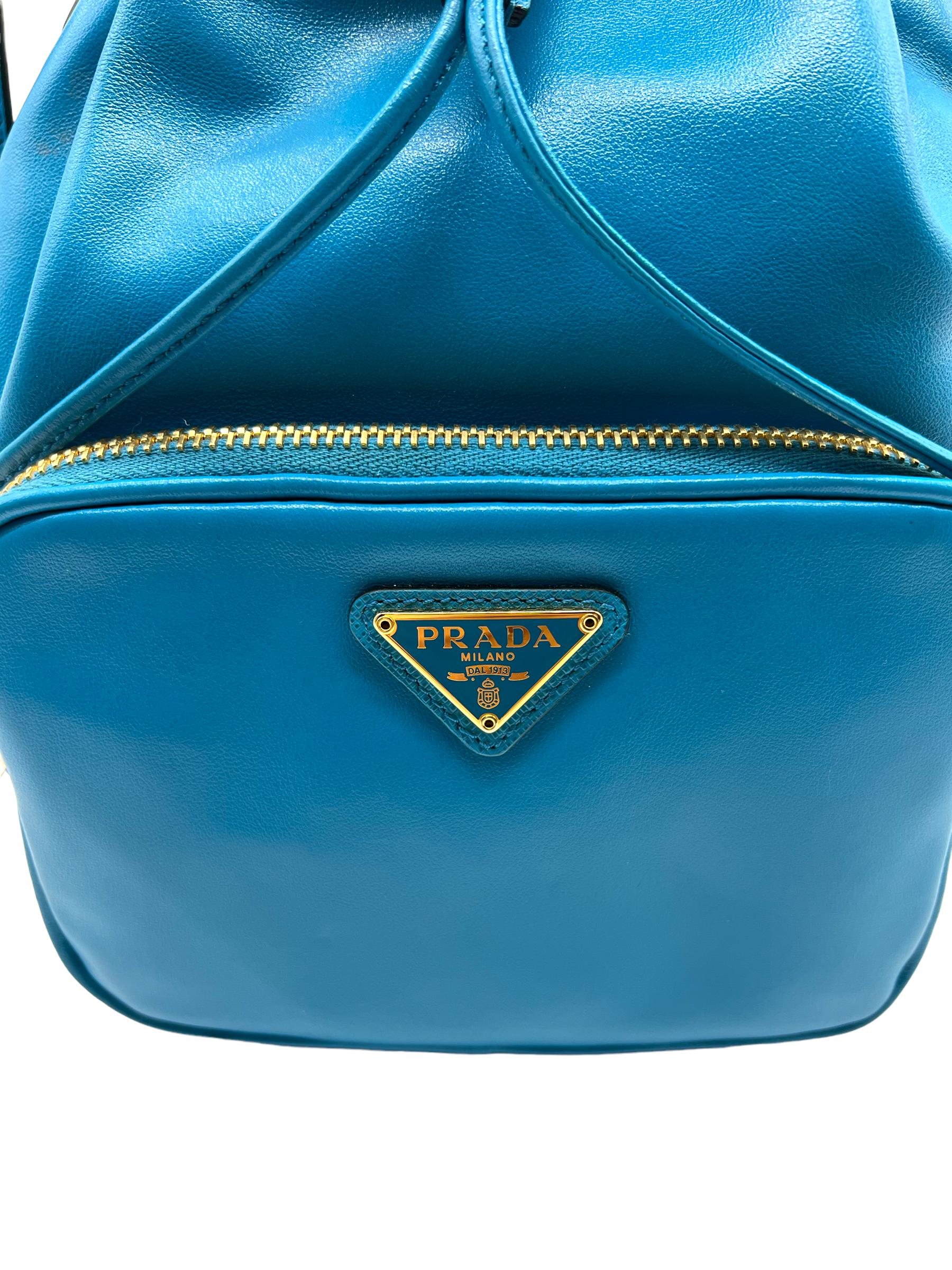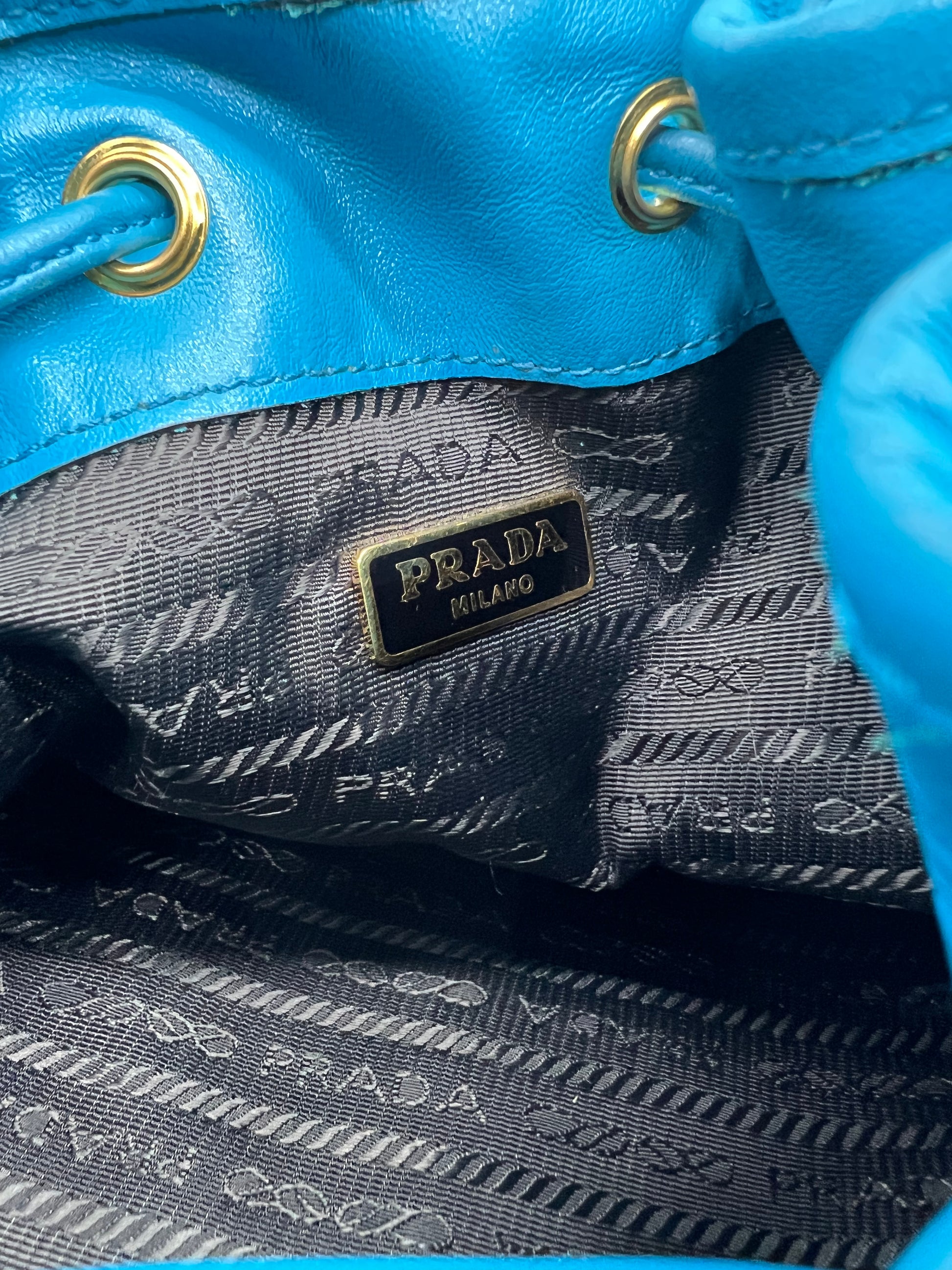Prada Blue Leather Small Drawstring Bucket Handbag