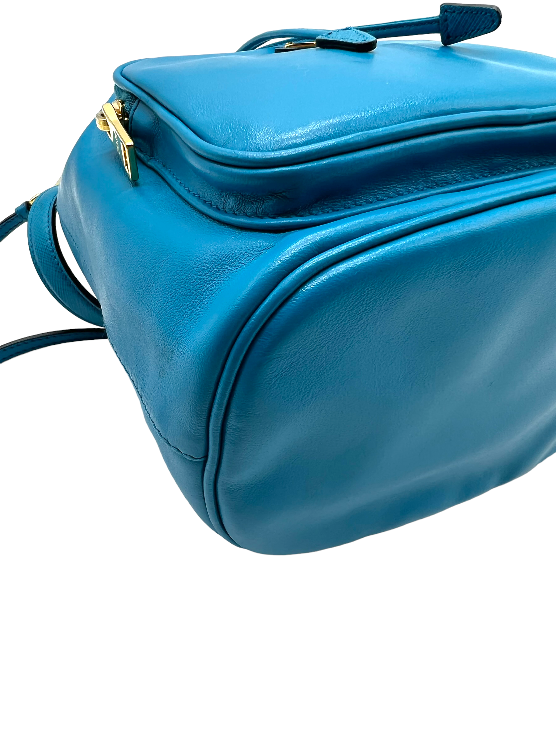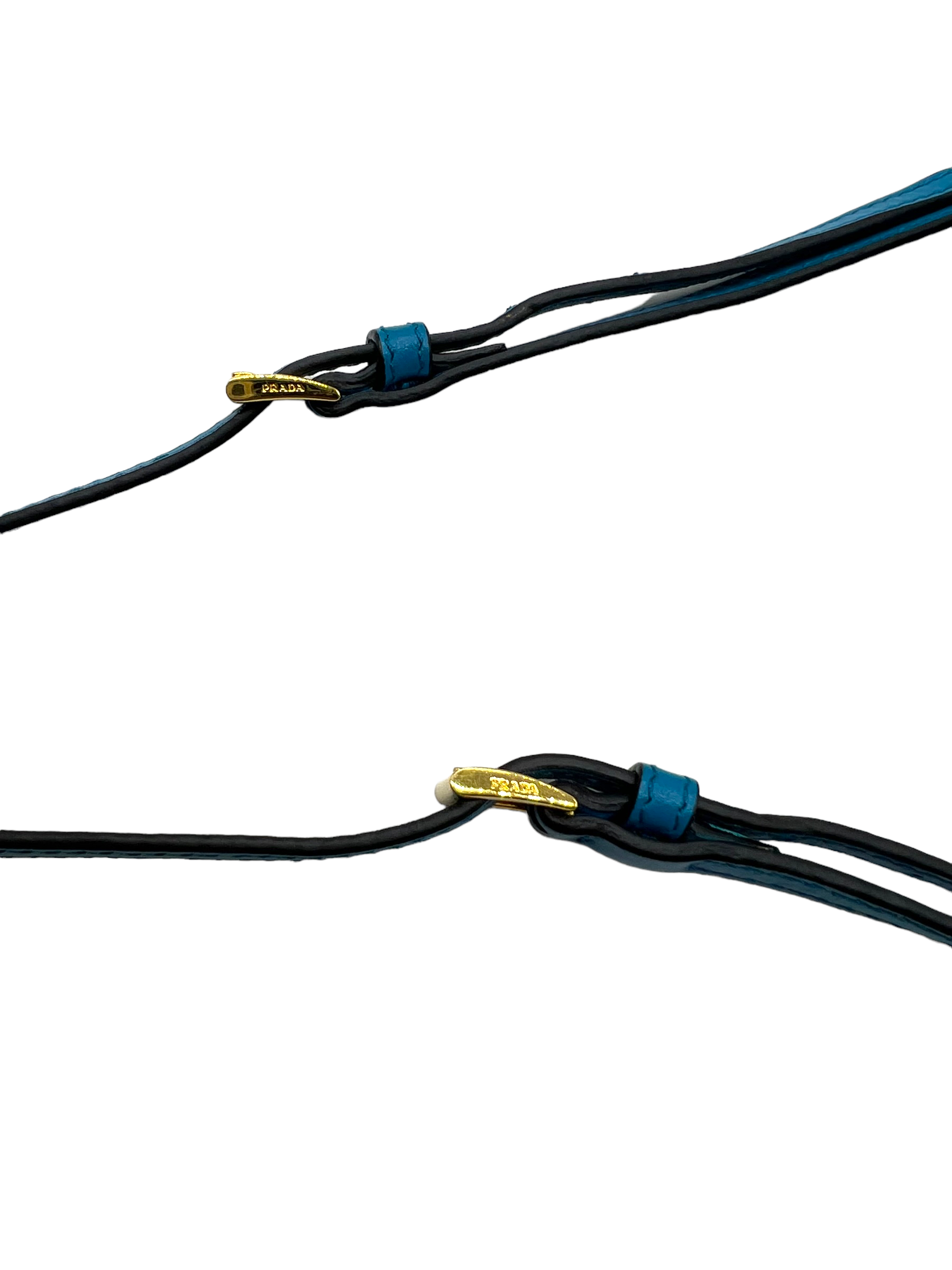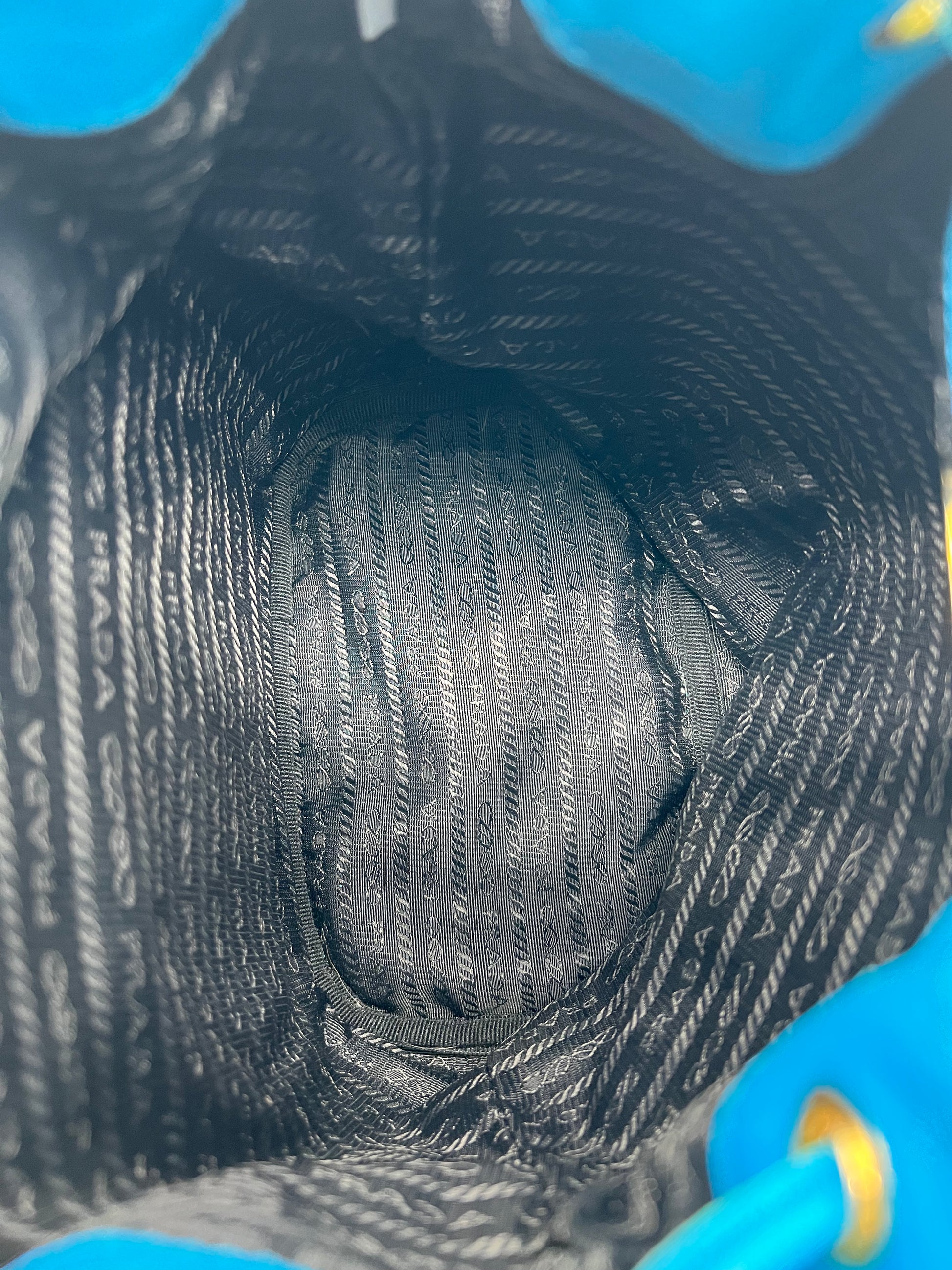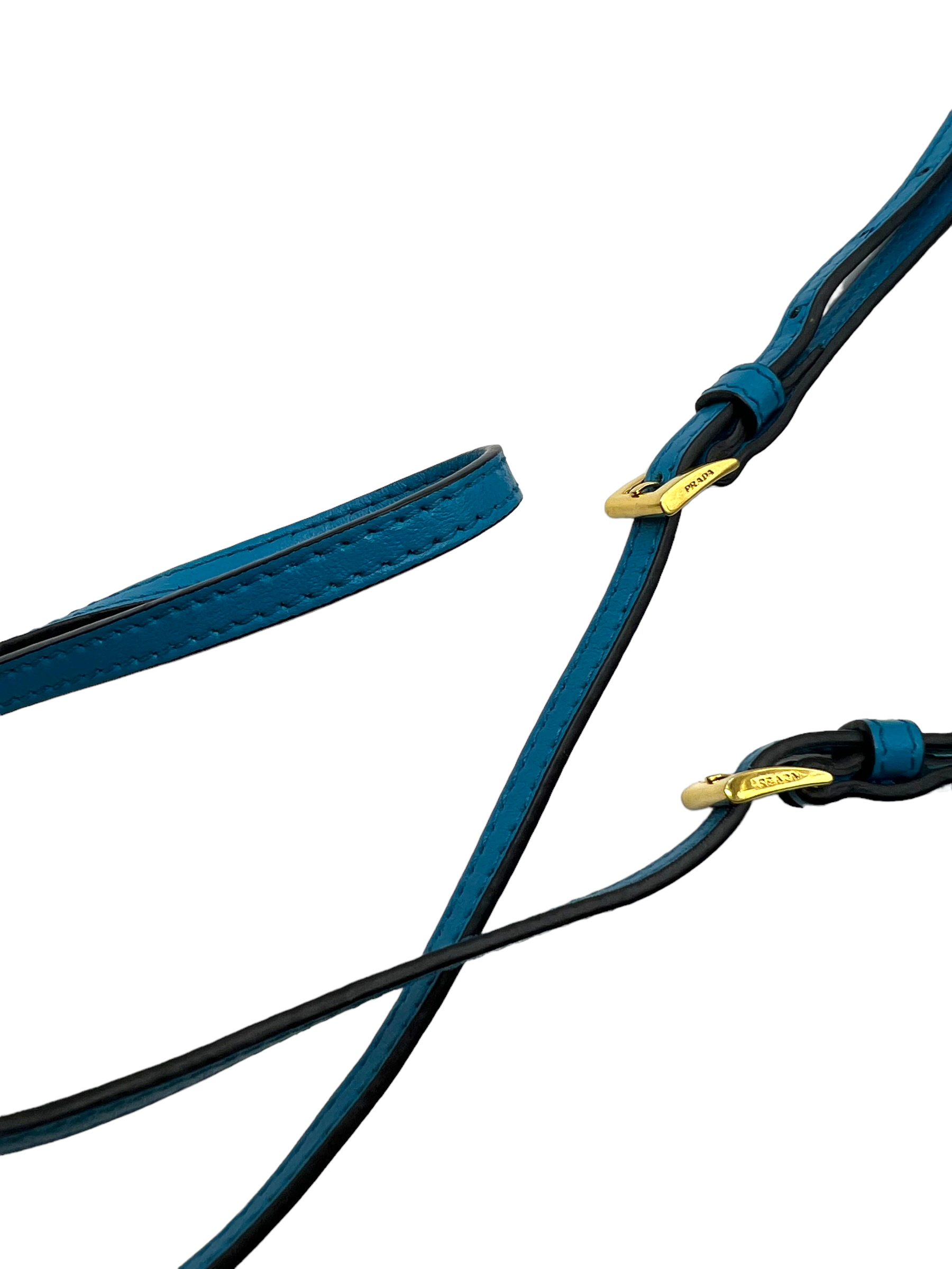 Prada Blue Leather Small Drawstring Bucket Handbag