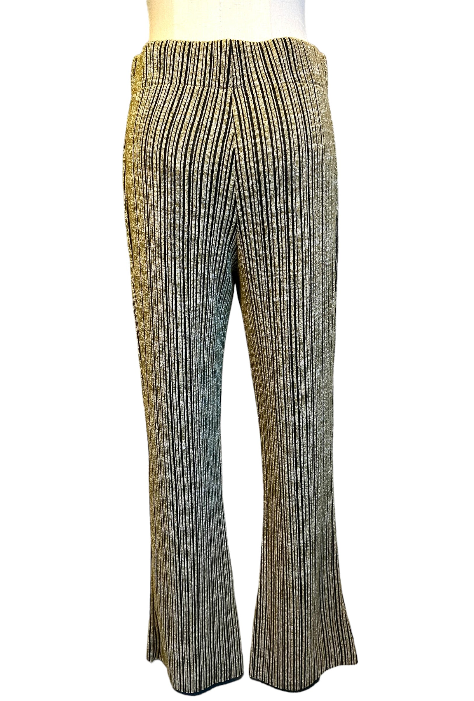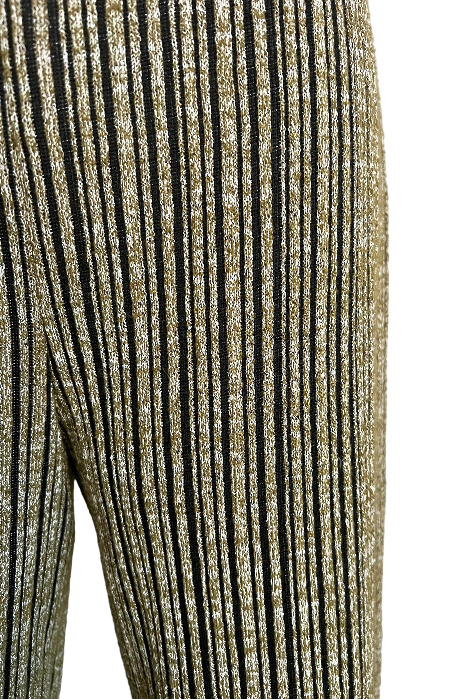 Gold and black knit high rise Raimi pull on pants with textured ribbing and fitted silhouette.