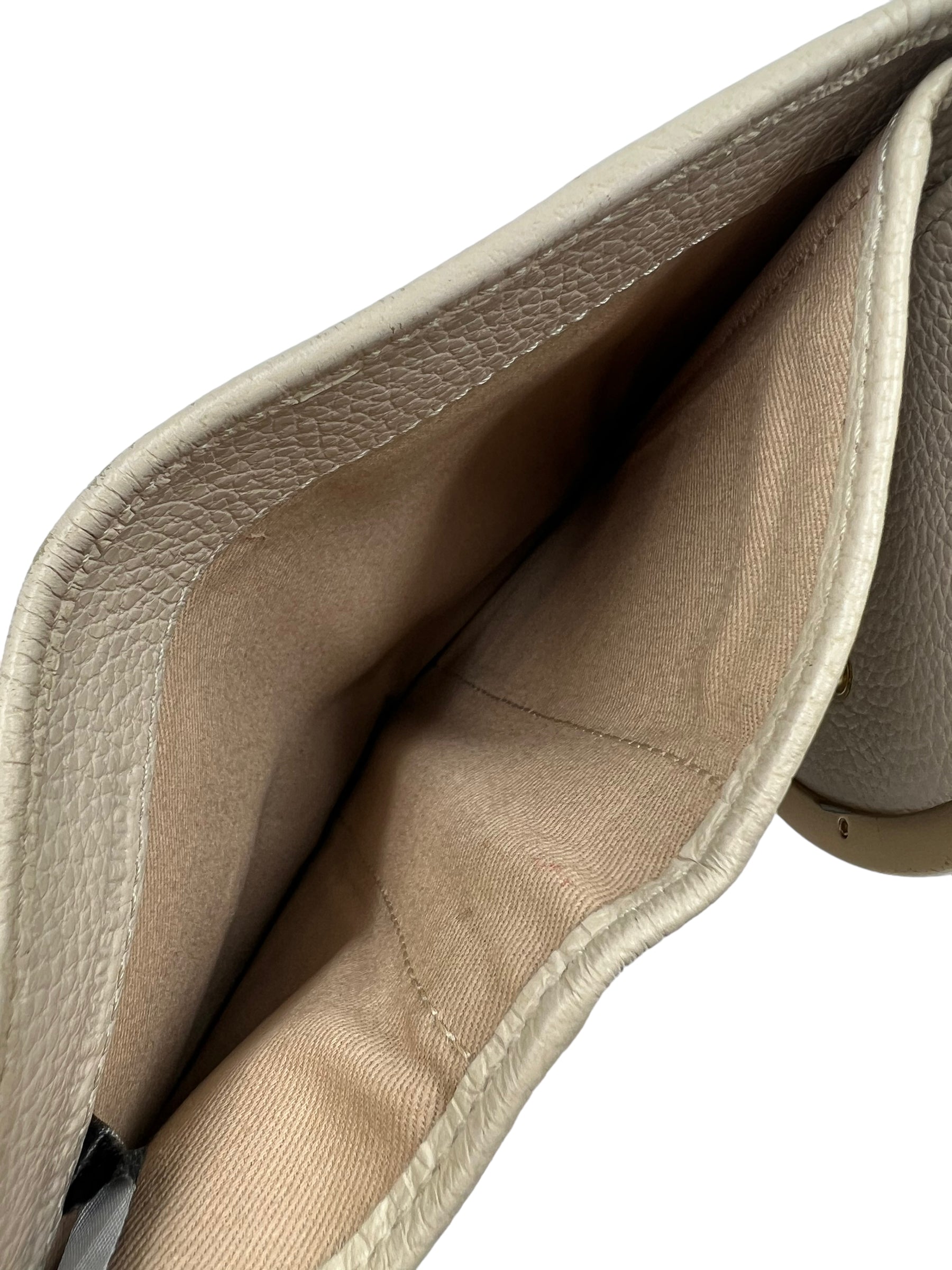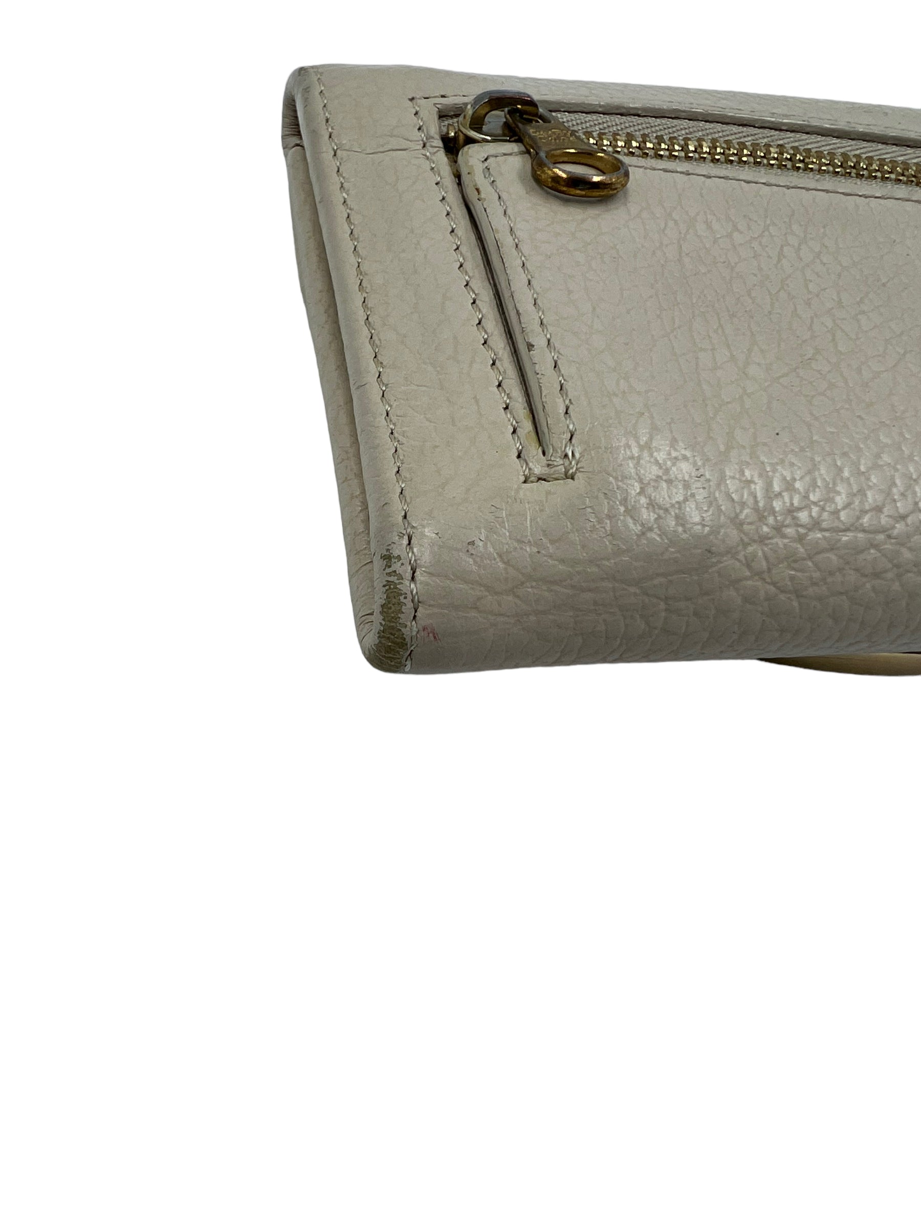 Cream pebble leather wallet with gold hardware. Does not come with dust bag or box.