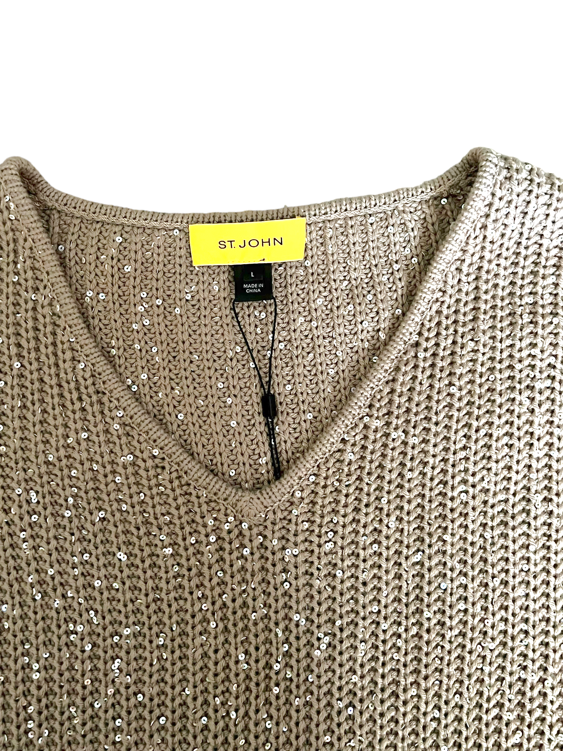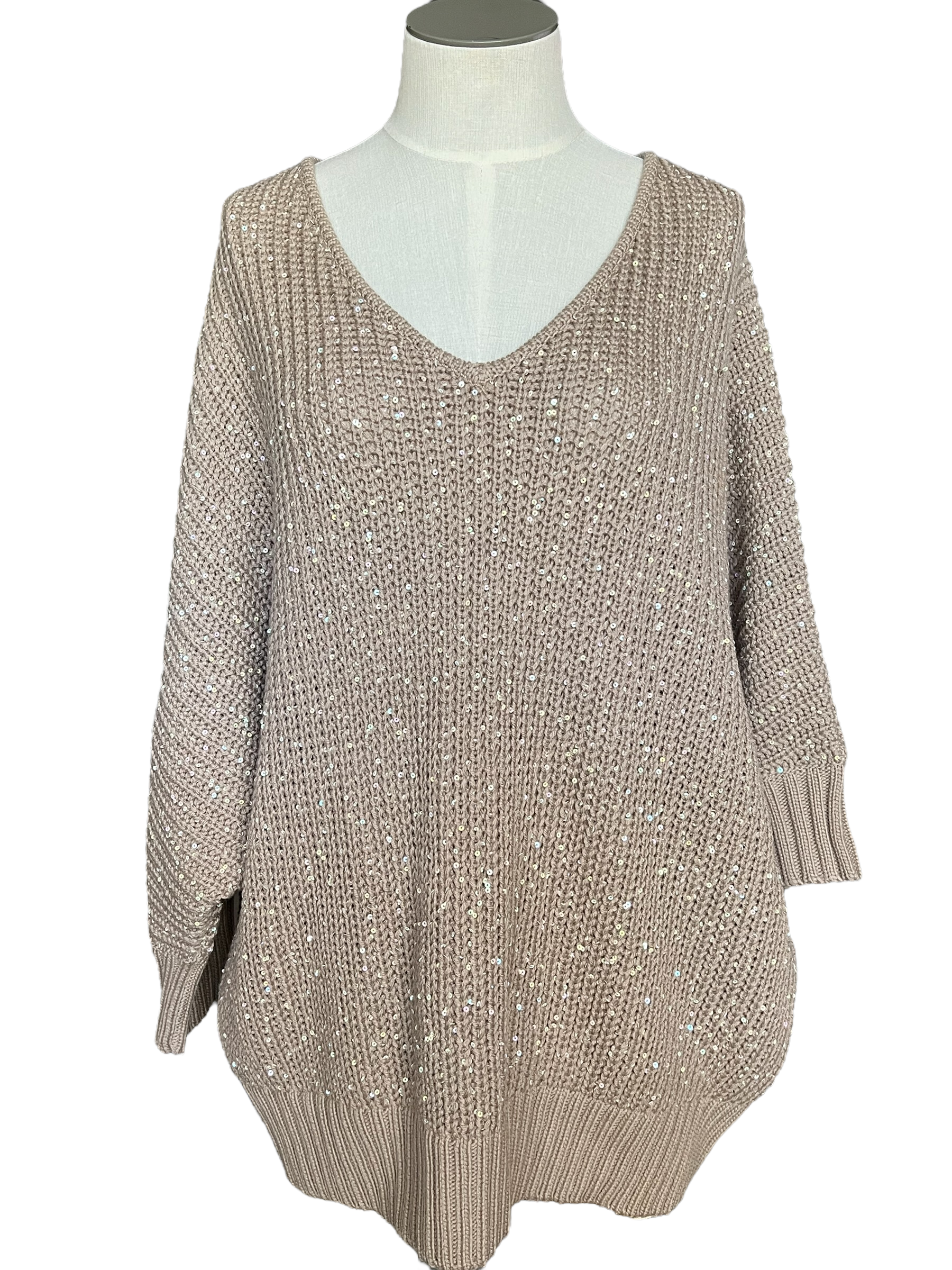 Beige dolman sleeve sweater with clear sequin detail. Comes with original tags