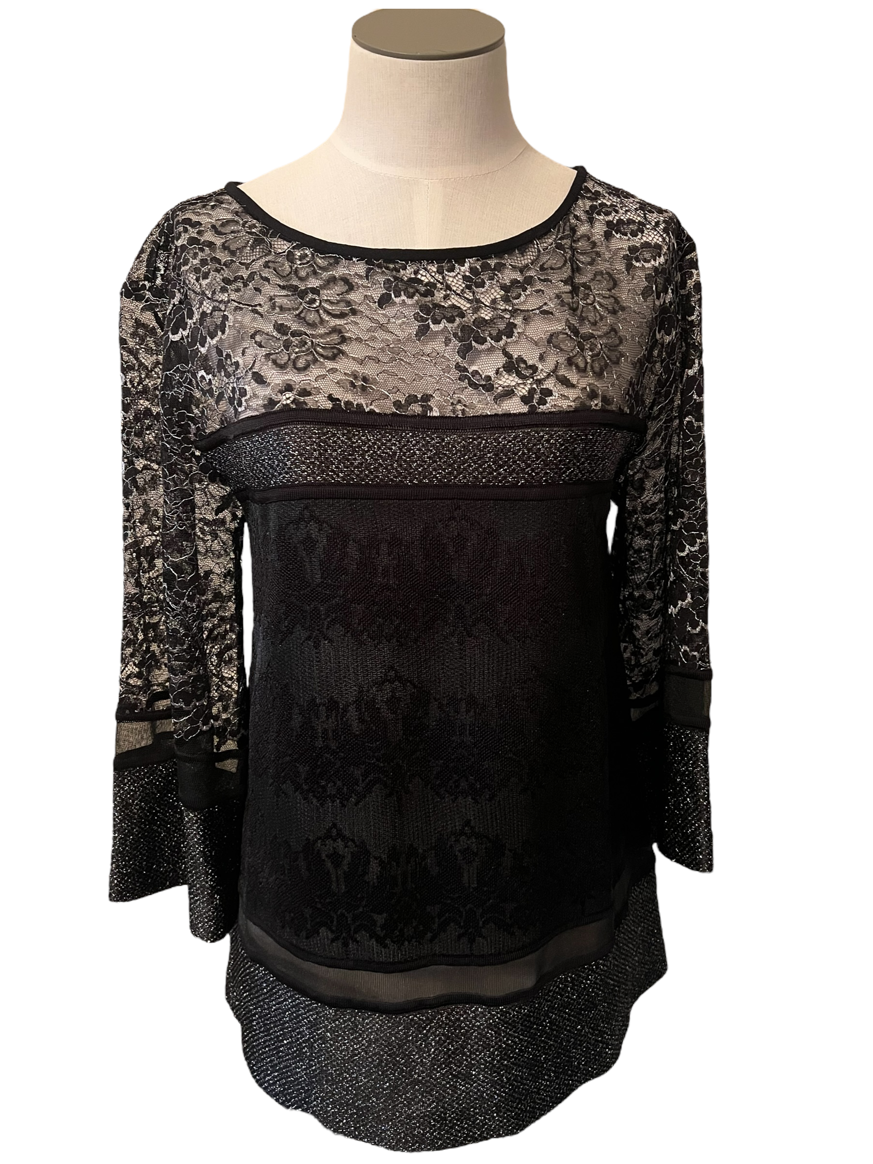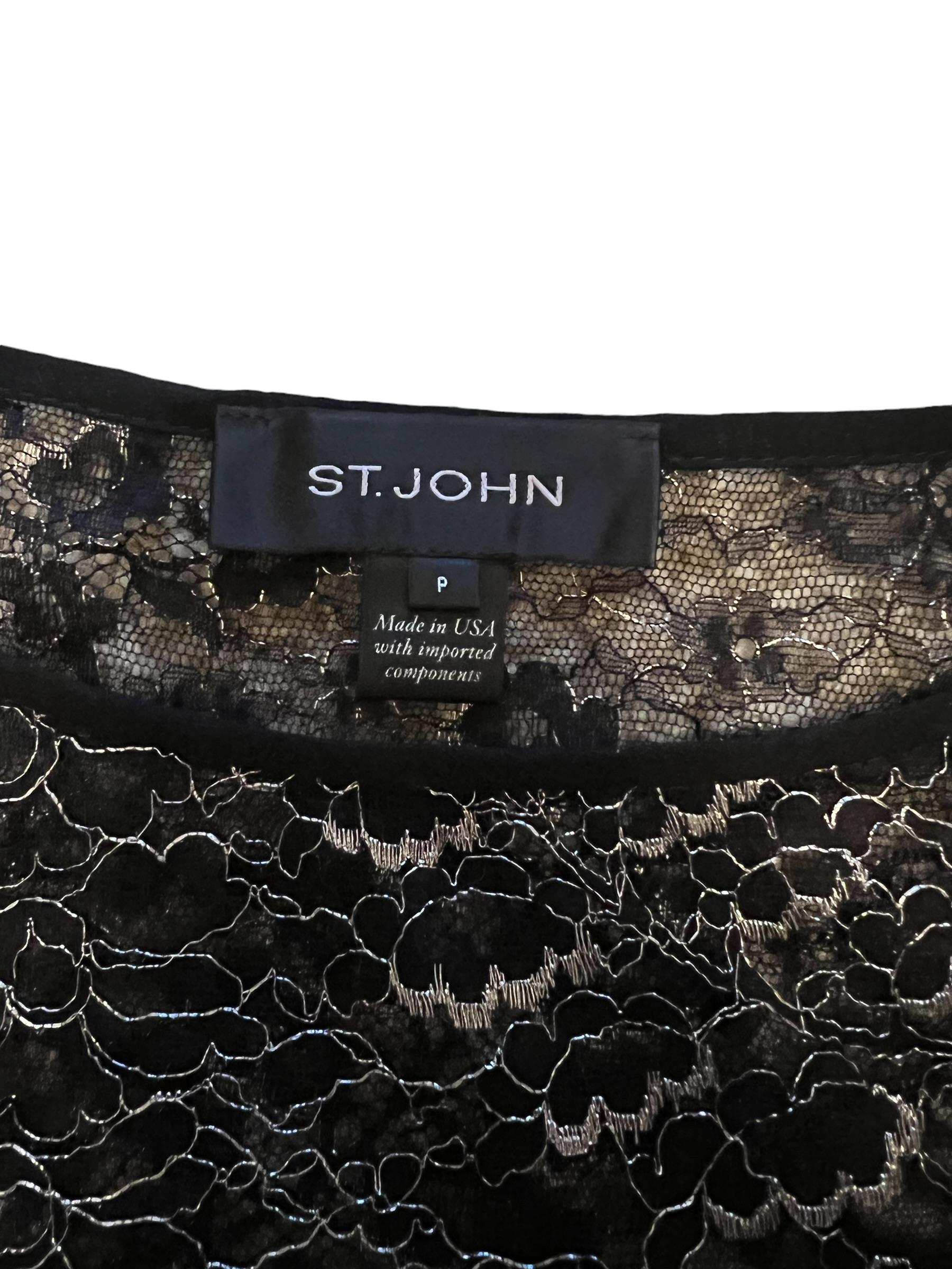 St. John Black Lace Metallic Sheer Size P Top