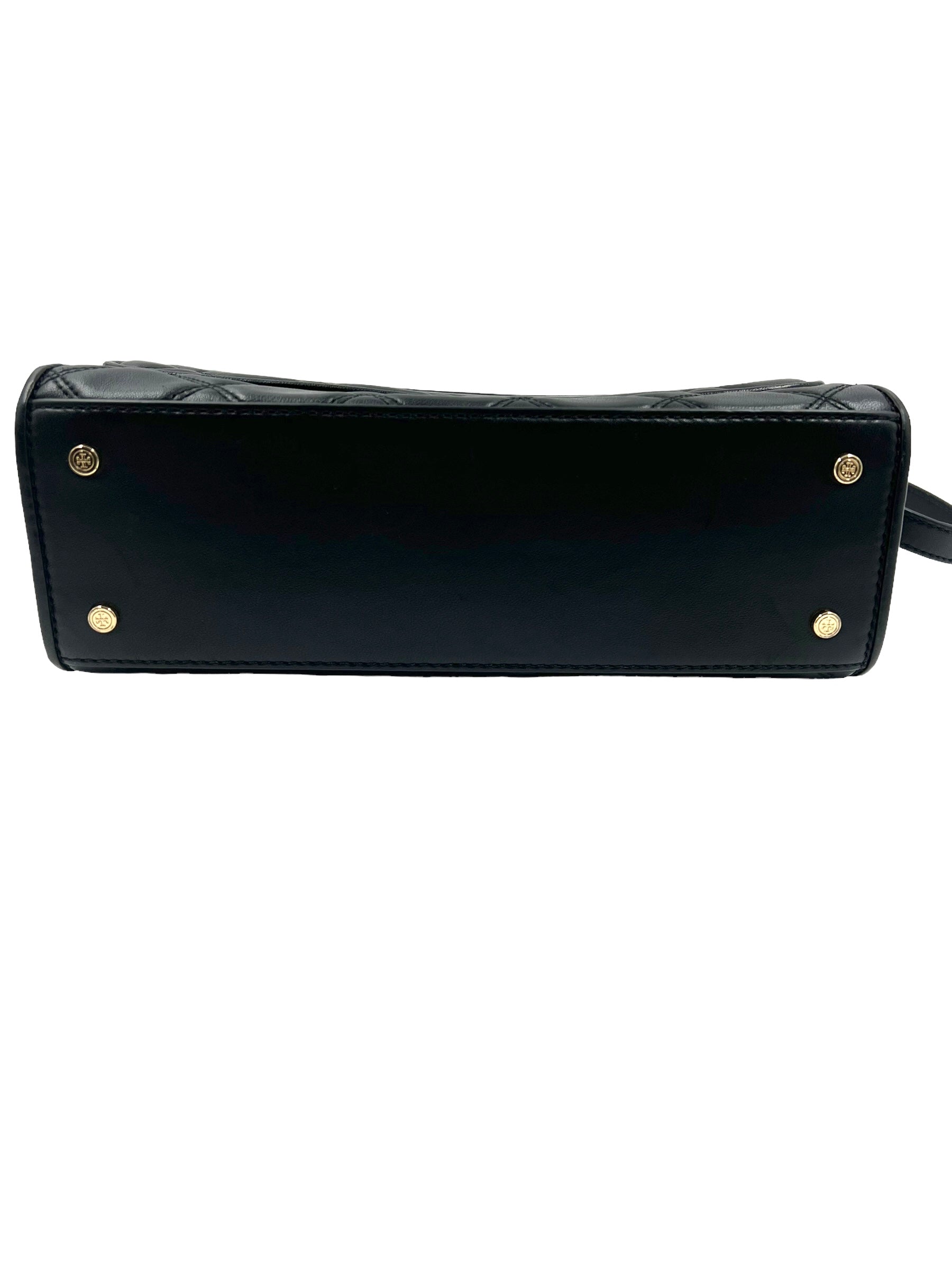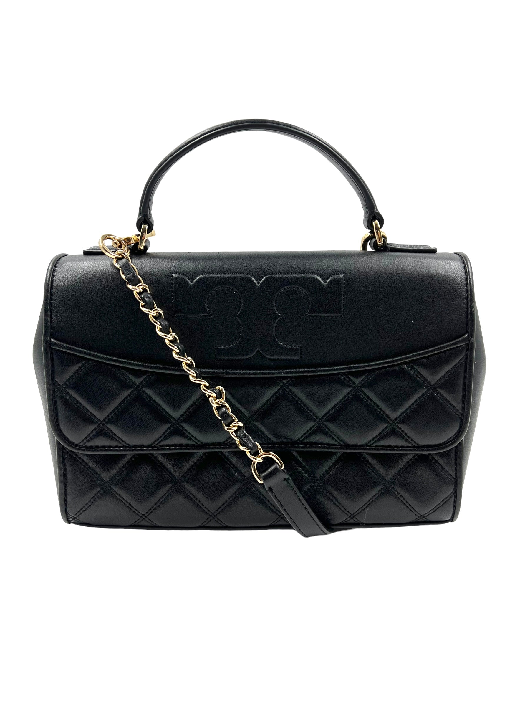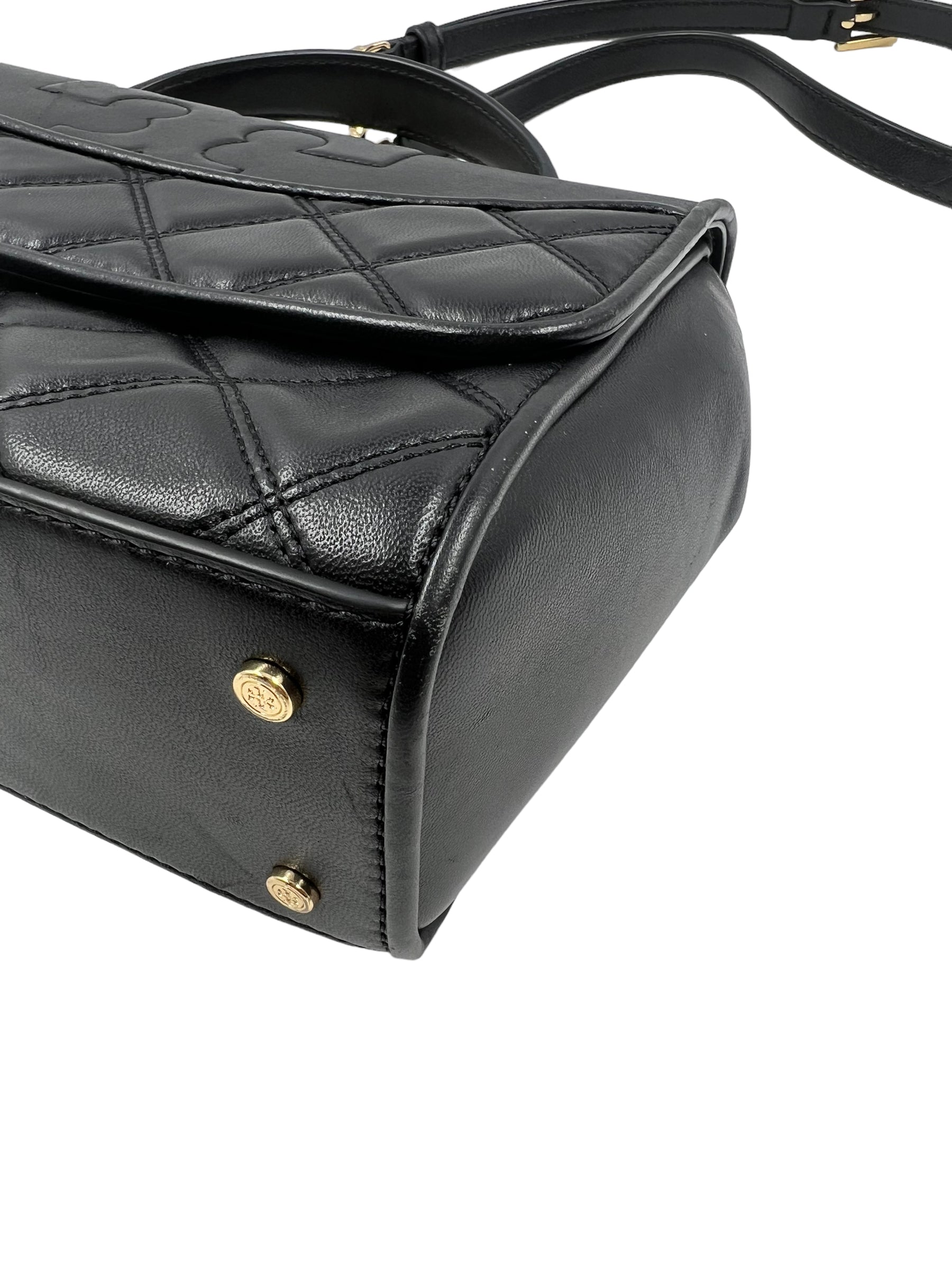 Tory Burch Black Leather Quilted Logo Flap Bag
