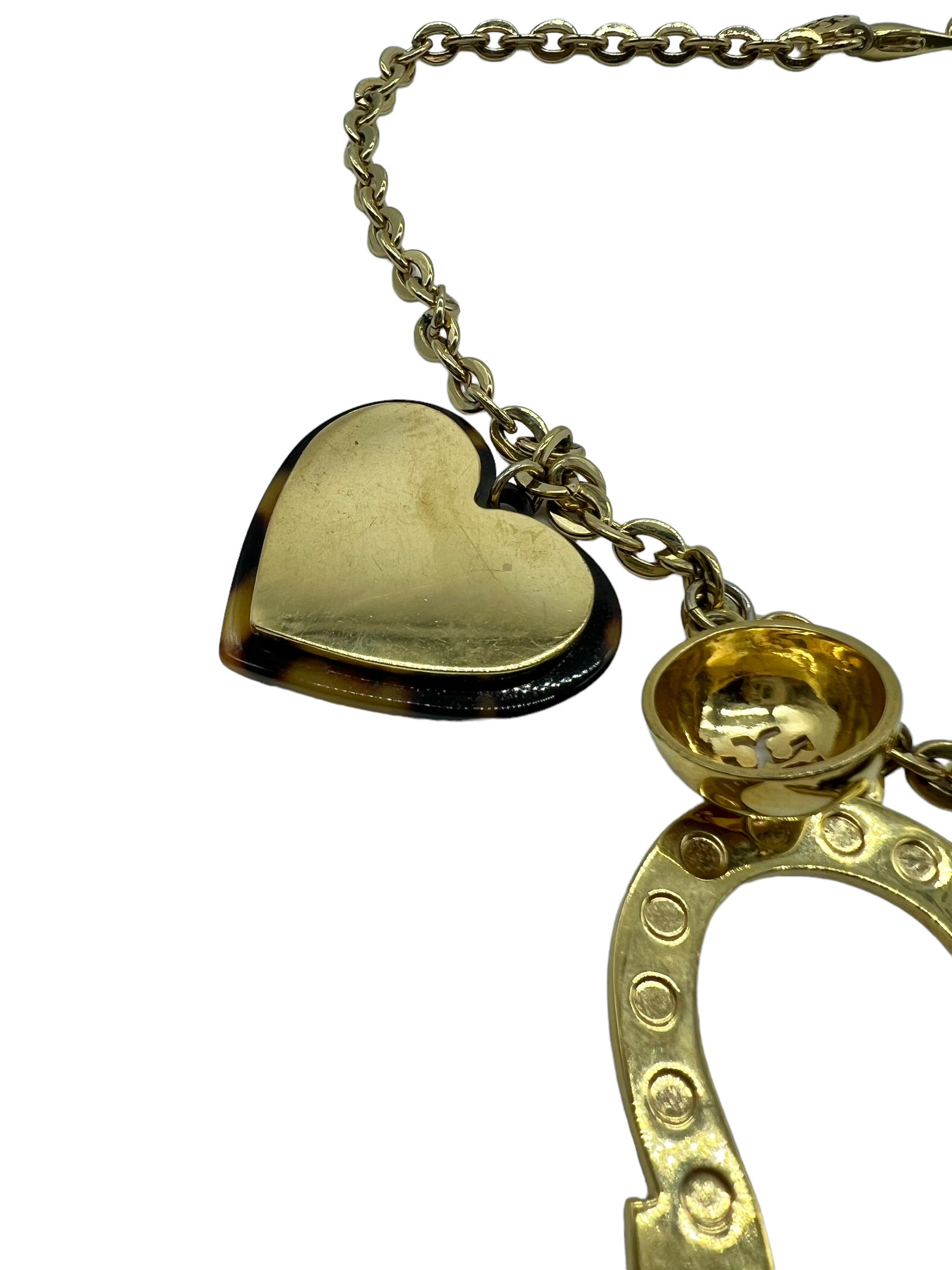 Gold necklace with tortoise resin charms. Comes with non-branded box.