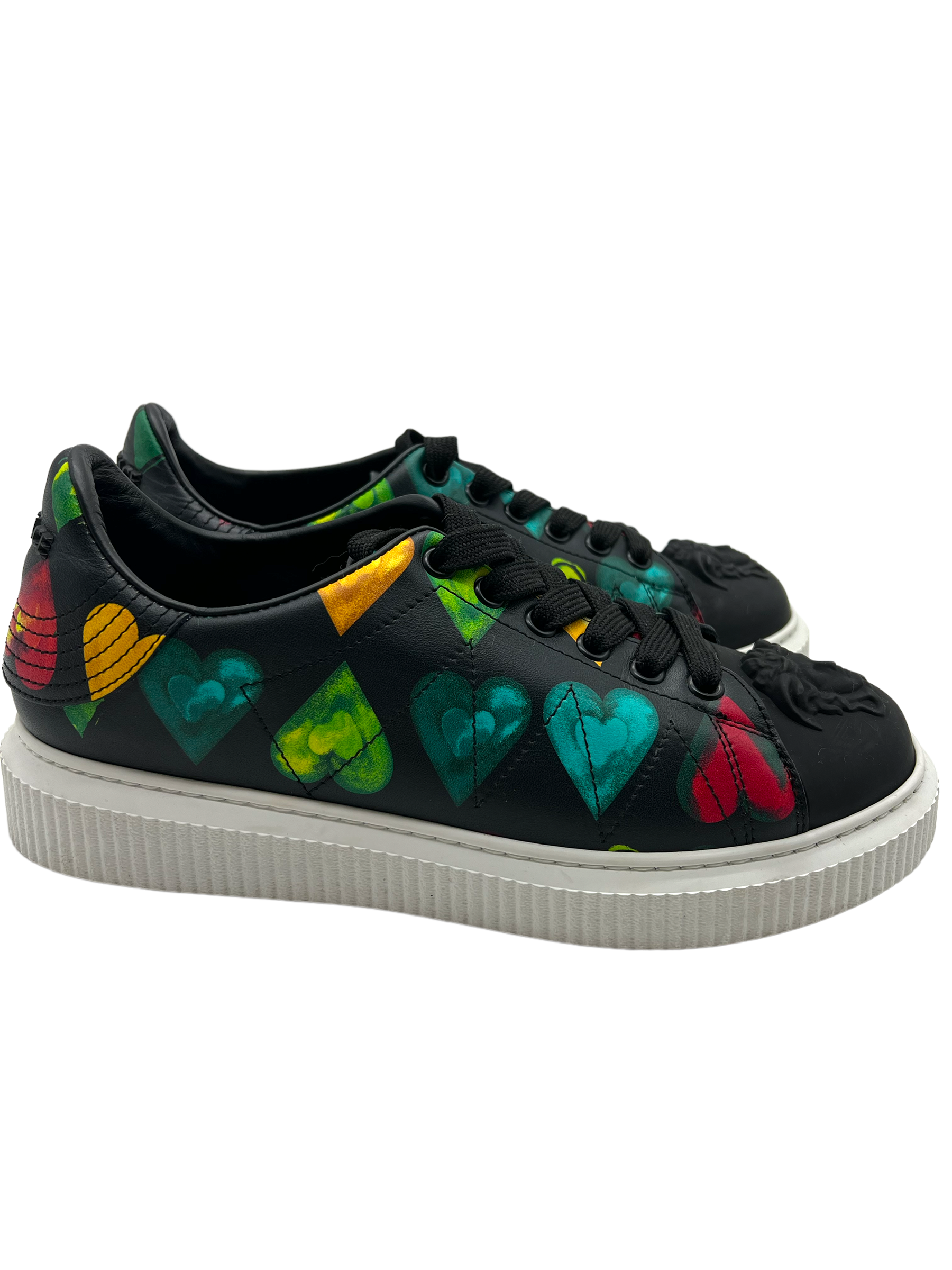 Versace Black Heart Print Medusa Head Low Top Size 38 Sneakers