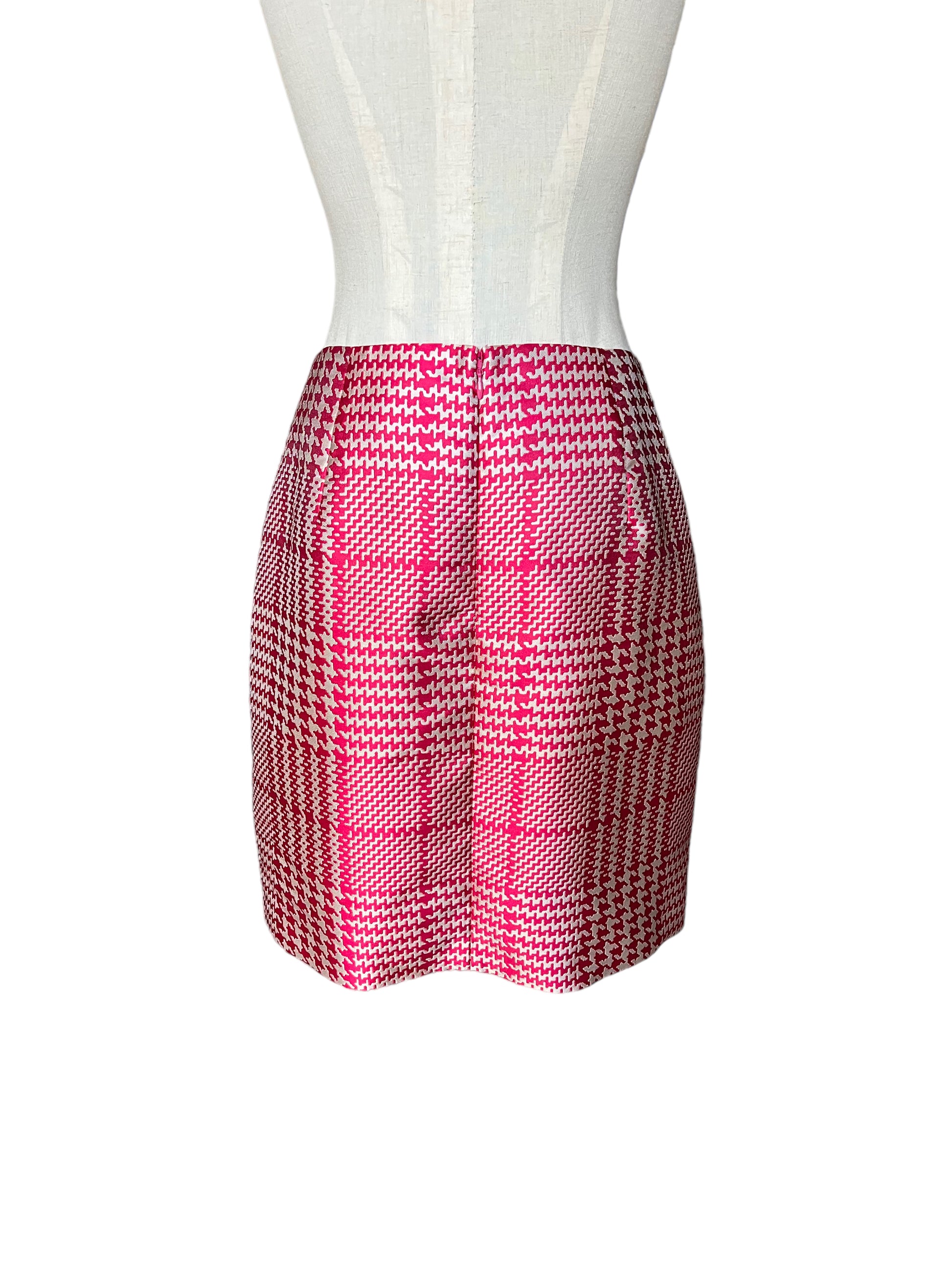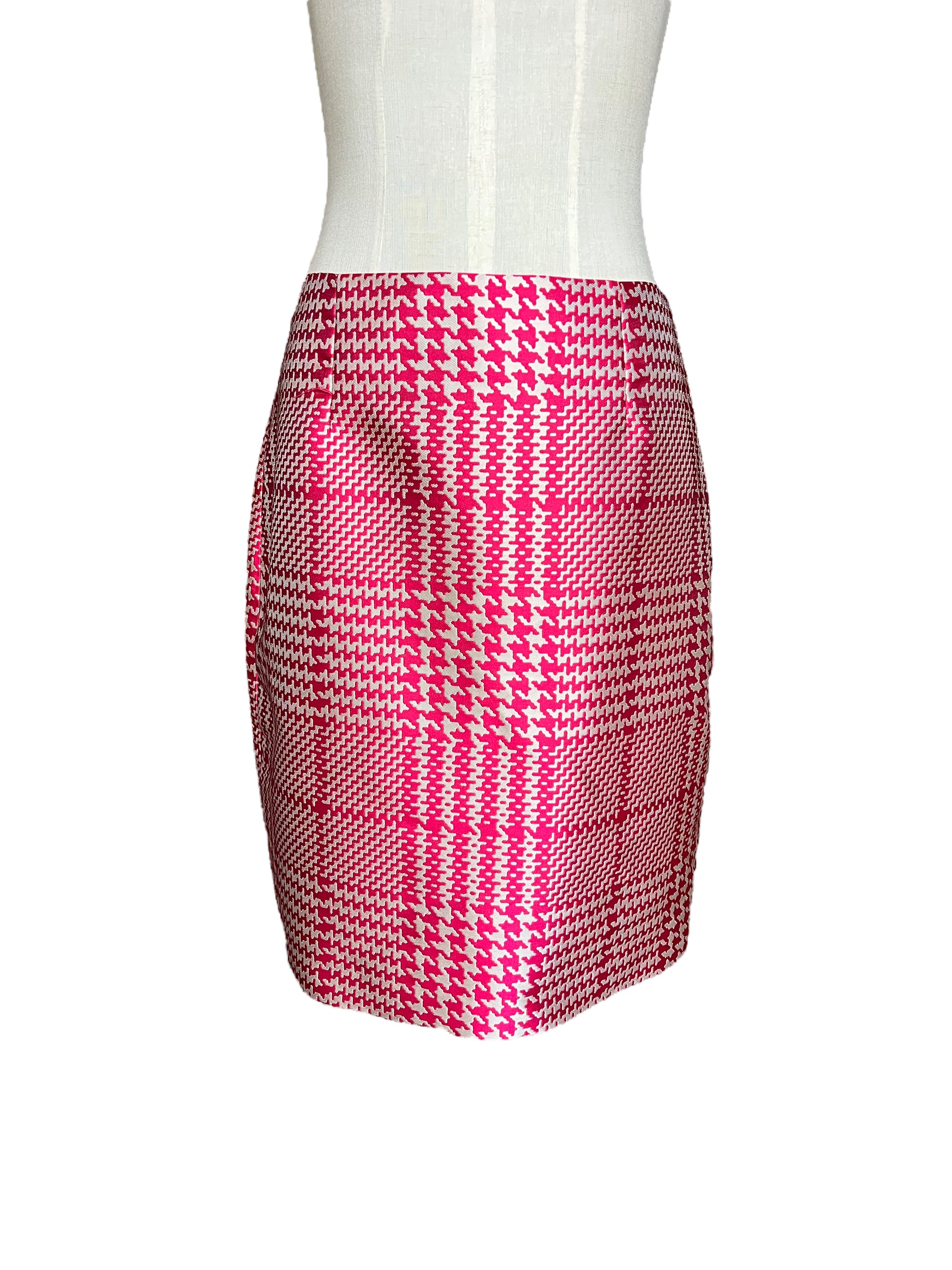 White House Black Market Size S Bright Rose/Pumice Houndstooth Skirt Set